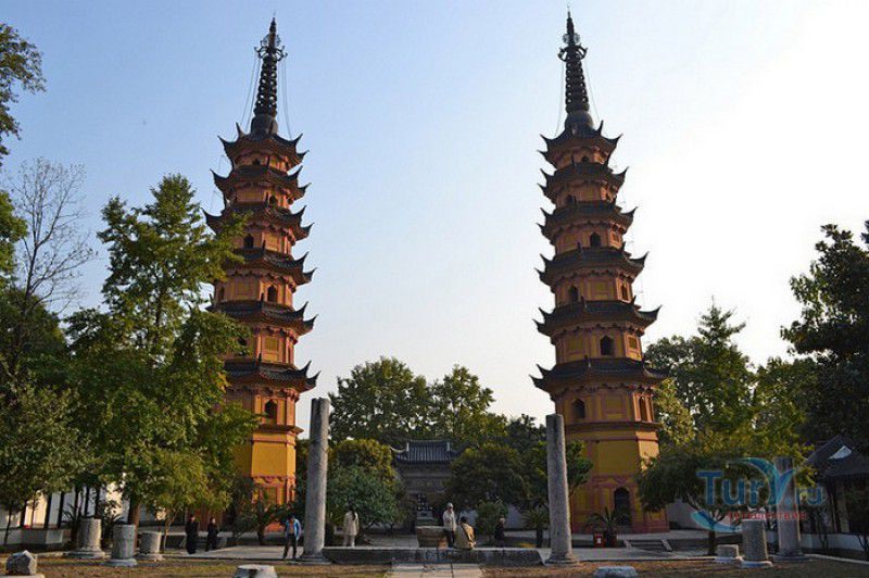 Парные Пагоды расположены в Китае, в городе Сучжоу. Они были построены в 982 году, во время правления династии Северная Сун. Пагоды размещались у входа в древний храм Luohanyuan Temple, который в 1860 году был разрушен практически до основания. Сохранились лишь пагоды-близнецы, называемые также пагодами Доблести и Доброжелательности, о самом же храме в наши дни напоминают только руины. Обе пагоды построены из кирпича, имеют восьмигранную форму, 7 этажей и высоту 33,3 и 33,7 метров. Первоначально пагоды были абсолютно идентичны, разница в высоте, которая составляет 40 см, была допущена из-за ошибки реставраторов в ходе восстановительных работ, проводимых в середине XX века. Каждый этаж имеет по четыре арочных и ложных окна, расположенных в шахматном порядке, над окнами установлены кронштейны для поддержки выступающих карнизов, состоящих из шести слоев кирпичей с зубчатыми краями. На верхний этаж ведёт передвижная лестница, расположенная внутри пагоды. Архитектурная особенность Парных пагод - большой металлический шпиль, венчающий сооружение. Его длина составляет 1/4 от общей высоты многоярусной башни, что нехарактерно для пагод древнего Китая.