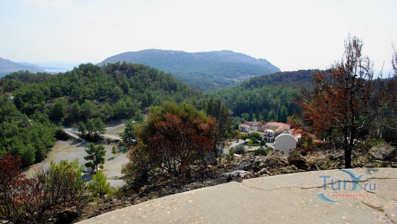 Монастырь Панагия Ипсени находится в юго-восточной части острова Родос, в 50 км от города Родос, в окрестностях деревни Лардос. Построен он на возвышенности, возможно этим объясняется его название, которое происходит от греческого слова "Ypseni", т.е. "высота".
