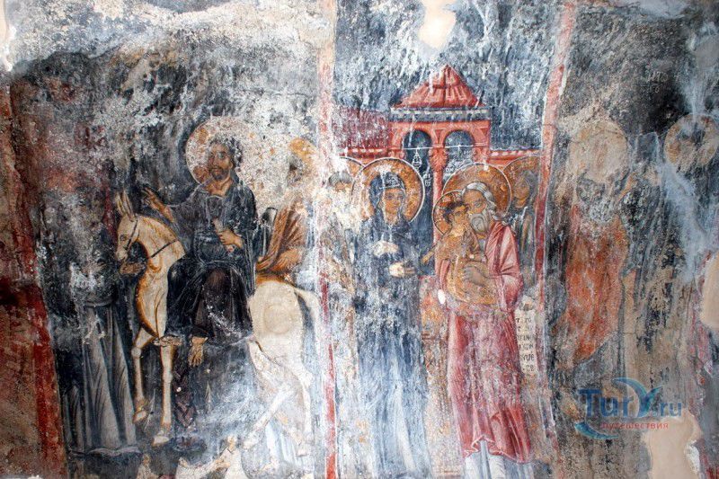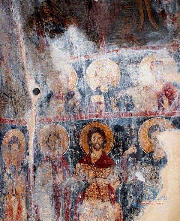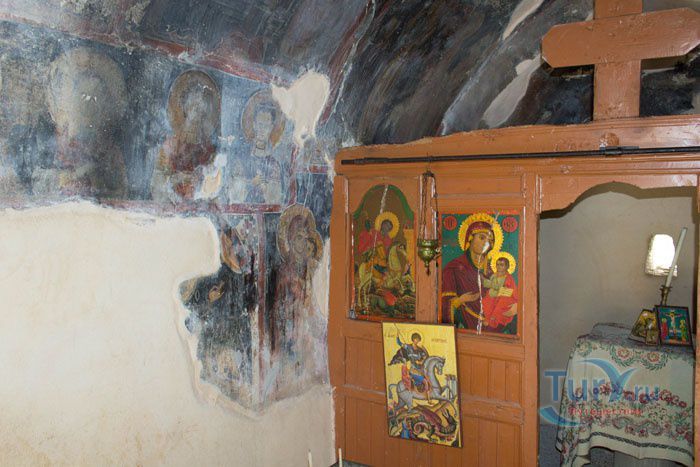 Церковь Святого Георгия Ва́рдаса находится в лесочке на краю поля около искусственного озера деревни Аполаккья. Сама деревня находится в 4 км. Церковь была построена в 1290 году. Небольшой каменный домик внешне мало напоминает религиозное здание - нет ни купола, ни креста, и , возможно, даже не заинтересовало быт Вас, если не знать что самое удивительное ожидает внутри - это подлинные фрески XIII века: Святые воины Трифон, Никита и, предположительно, Дмитрий Солунский, "Вход Иисуса в Иерусалим", "Встреча со старцем Симеоном", "Святые Ирина, Варвара". К сожалению, совсем плохо сохранились фрески "Успение Богородицы", "Крещение Иисуса". И "Святой Георгий", имя которого и носит церковь, обязательно на белом коне с копьем в руках.