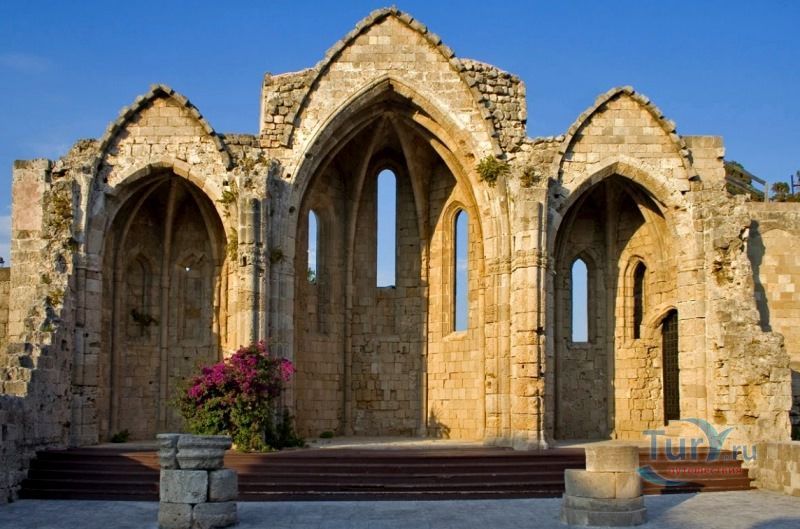 Храм Богоматери Бургоса (Хоры) - самый большой по размерам, самый часто посещаемый и пользующийся большой популярностью католический храм всего Родоса. Храм был построен в XIV веке с расчетом, что при необходимости его можно было использовать, как прекрасно укрепленный бастион, поэтому ему удавалось пережить многие невзгоды и хорошо сохраняться практически в исходном виде. К сожалению, он сильно пострадал во время Второй мировой войны и от былой красоты уцелели только три свода алтаря.