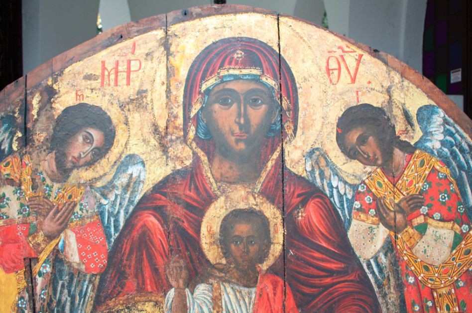 В этой церкви хранится чудотворная икона Богородицы. Икона покрыта золотым окладом и стеклом. А под ней висит целая гирлянда золотых и серебряных пластинок с изображениями различных частей тела: рук, ног, ушей, животов, глаз и т.д., а также младенцев. Пластинки приобретают и оставляют у иконы в знак благодарности люди, получившие от нее исцеление в какой-то болезни: глаза, уха, руки, ноги или, в случае с младенцем - бесплодия.