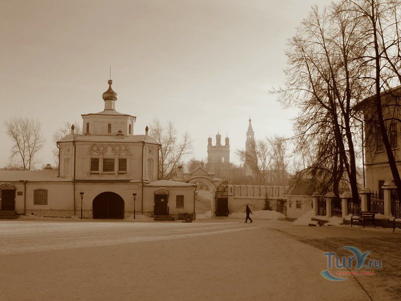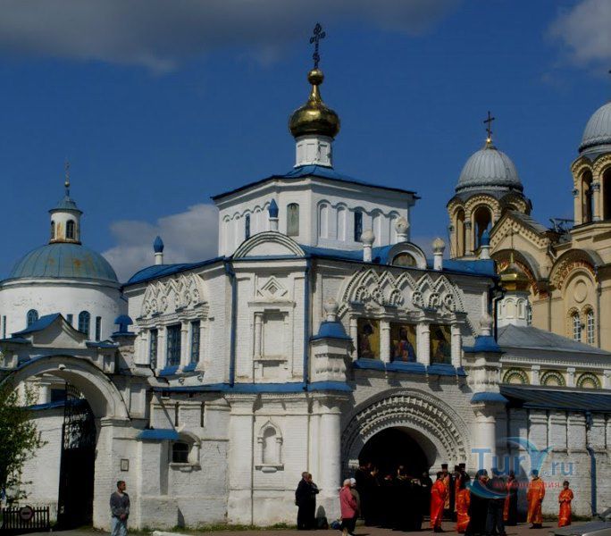 При входе на территорию монастырской усадьбы Свято-Николаевского мужского монастыря посетители проходят через врата Симеоно-Анненской надвратной церкви.