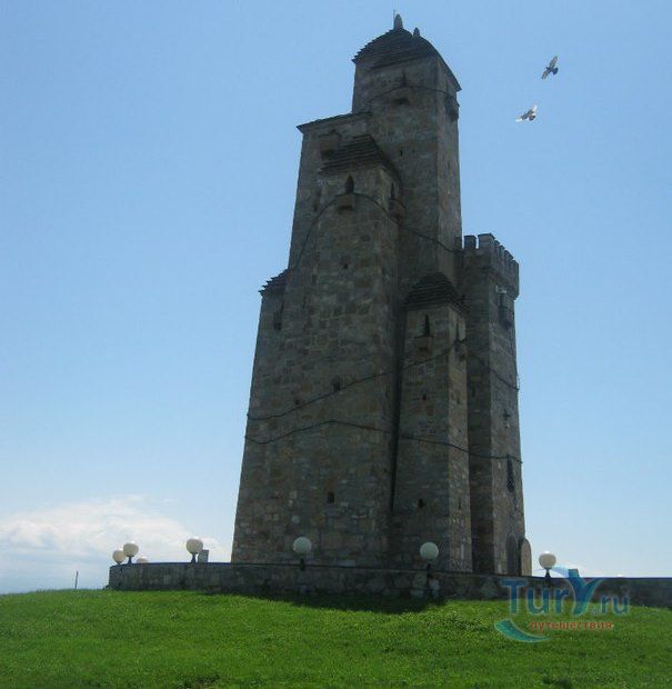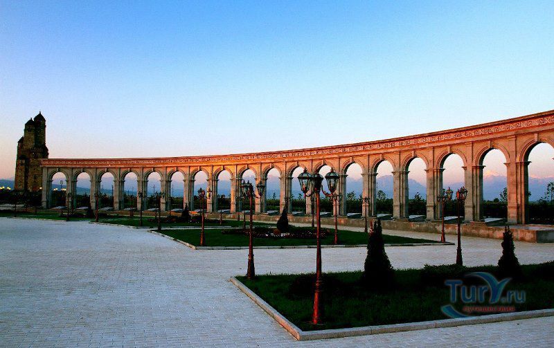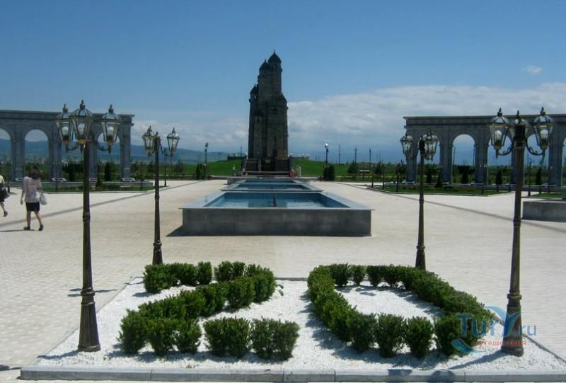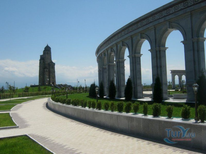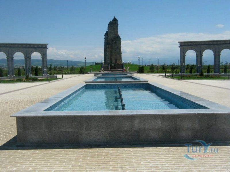 Раньше, это был Мемориальный комплекс жертвам репрессий, открытый 23 февраля 1997 года - к 53-ей годовщине трагедии ингушского и других депортированных народов СССР. Памятник представлял собой 9 башен, скрепленных колючей проволокой, символизирующих количество депортированных народов. Работа архитектора, заслуженного художника России Мурата Полонкоева. Позже прилегающую территорию обустроили, добавили арки, на одной из которых изображена сцена принятия ингушскими воинами подданства Российской империи, фонтаны и еще несколько памятников героям. В итоге получился совмещенный мемориал памяти и славы, открытие которого состоялось 9 июня 2012 года и приурочено к 20-летию Республики Ингушетия.