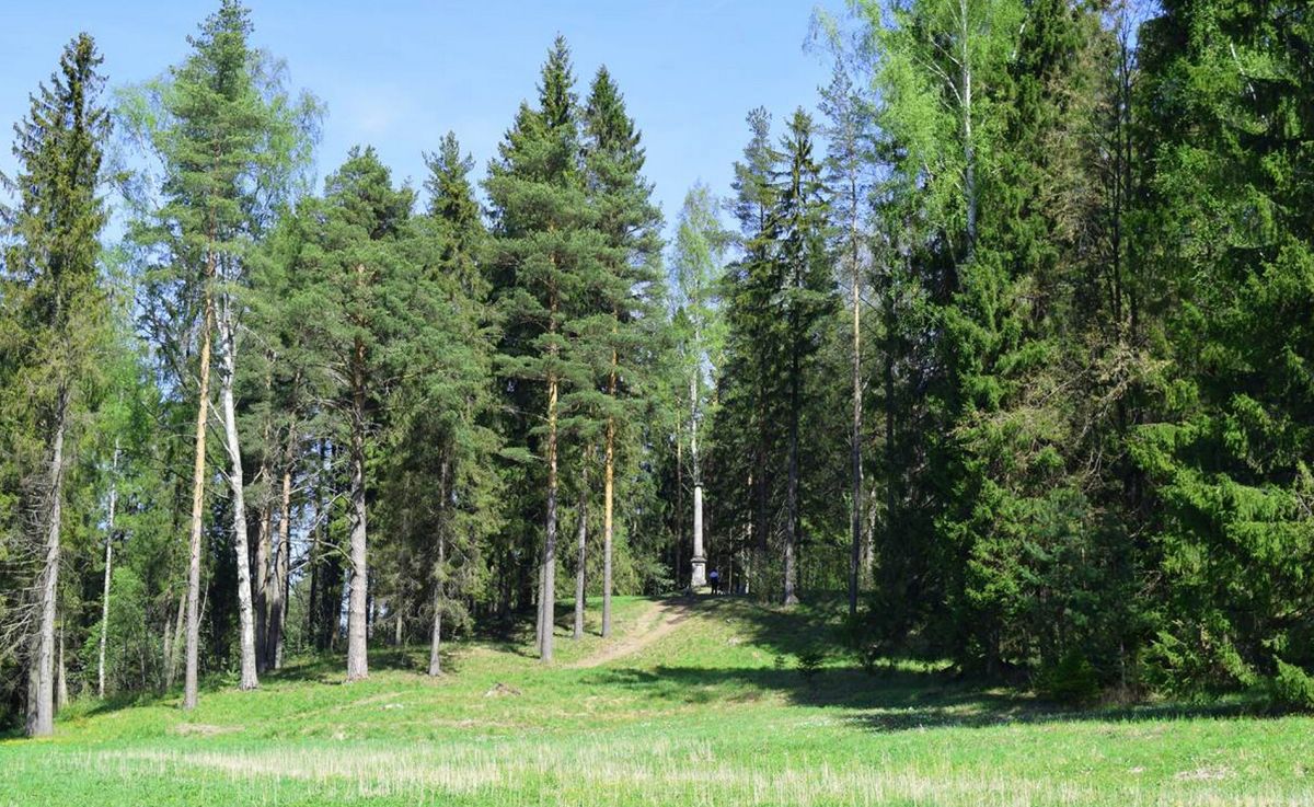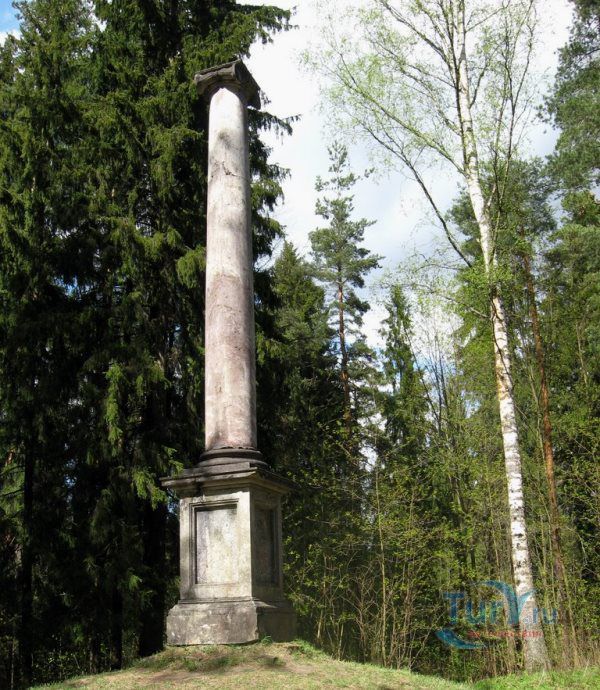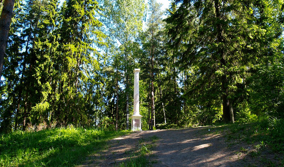 Колонна "Конец света" расположена в районе Новая Сильвия Павловского парка. Ионическая колонна из розового олонецкого мрамора была создана архитектором Ч. Камероном в 1783 году. Когда-то она возвышалась в конце Тройной липовой аллеи и отмечала границу регулярной части парка, но при расширении Павловского парка была перенесена к новым границам, и установлена между деревьями на насыпном холме.