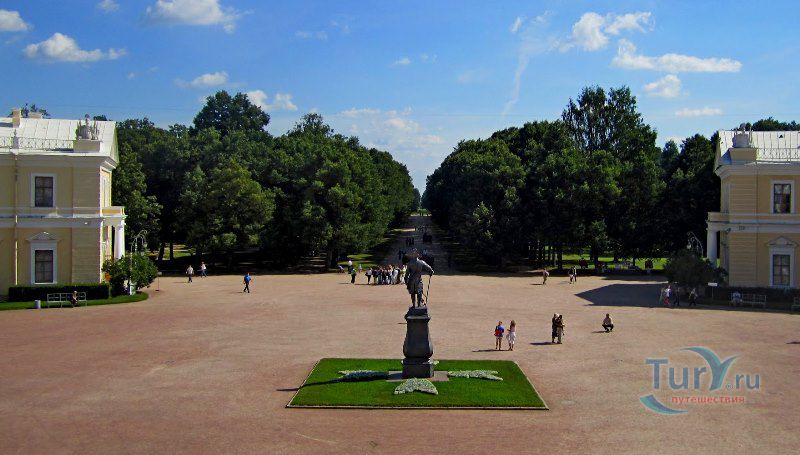 Памятник Павлу I был заказан владельцем Павловска великим князем Константином Николаевичем. Это второй подобный памятник императору. Первый установлен в Гатчине 1 августа 1851 года во время правления императора Николая I, сына Павла I. С него и была выполнена в 1872 году данная копия. Скульптура Павла I установлена на четырехгранном отполированном фигурном пьедестале, выполненном из финского гранита. Император изображен, опирающимся на трость, в парадном мундире и треуголке. Его поза, посадка головы, выражение лица придают памятнику черты представительности и величия. Император стоит лицом к входной аллее и "принимает гостей" в своей летней резиденции.