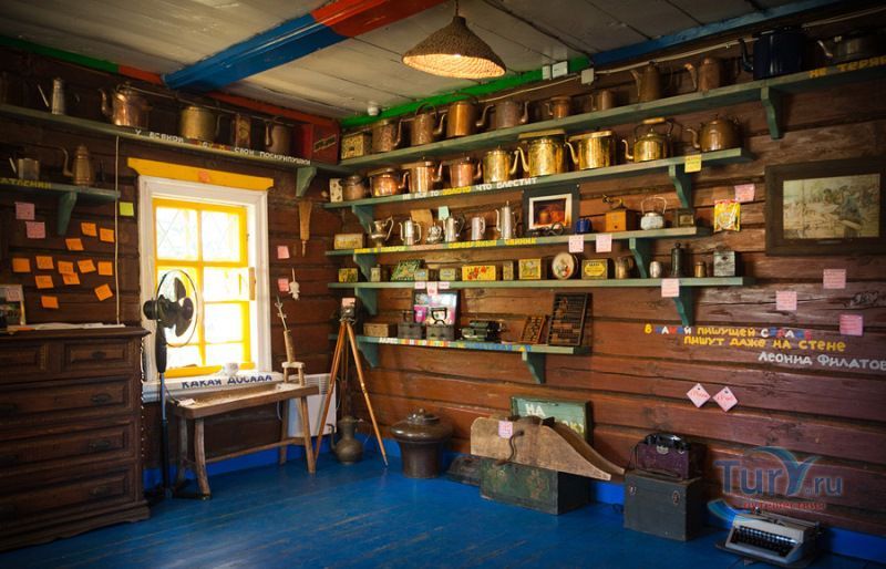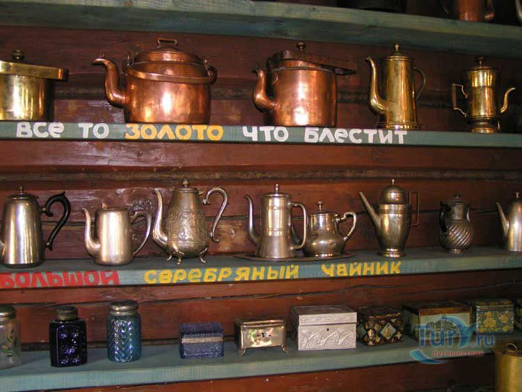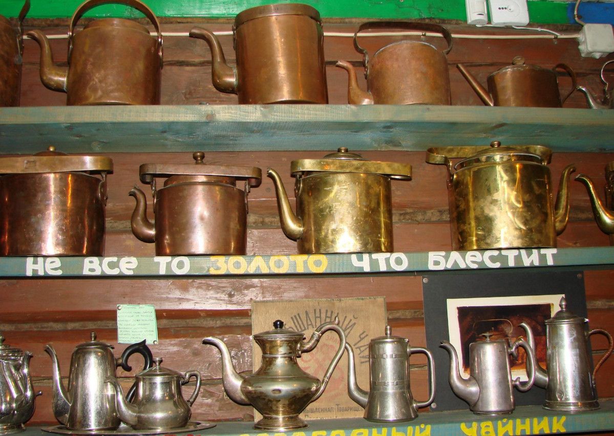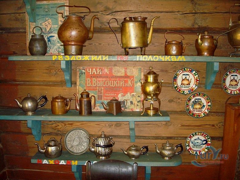 Музей чайника размещается в простой русской избе с очень ярким, красочным оформлением с долей шутки и юмора. Это частный музей основан Андреем Воробьевым и Дмитрием Никишкиным. Здесь представлена коллекция чайников и предметов русского народного быта. Его экспозиция состоит из более чем 100 чайников медных, фарфоровых, мельхиоровых чайников различных форм и назначений; необычные для нас сегодня предметы, бытовавшие в России ХIХ - начала ХХ века. К уникальным экспонатам можно отнести 15 литровый артельный чайник, чайник-самовар, который позволяет поддерживать высокую температуру воды, не доводя ее до кипения; чайник "Птица", выполненный в форме плывущего лебедя и, приспособленный для качки, морской чайник.