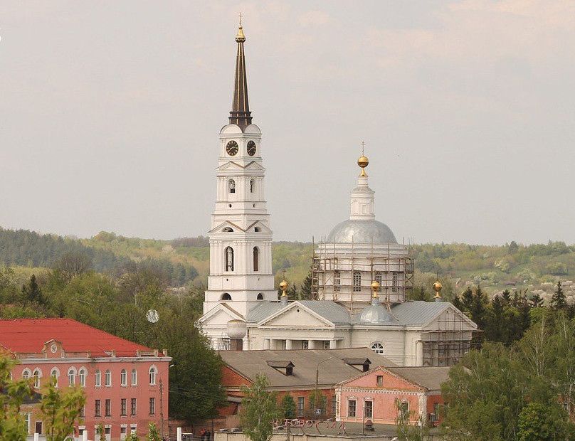 Собор Успения Пресвятой Богородицы расположен в центральной части города, на пересечении улиц Карла Маркса и Свердлова. Его еще называют Богородицким или Успенским собором. Он принадлежит к ансамблю одной из главных площадей города, где установлен памятник Г. И. Шелихову. Композиция собора включает в себя: трехпрестольный Соборный храм во имя Успения Божией Матери и грандиозную четырехярусную колокольню высотой около 60 м. Собор был построен в архитектурных традициях зрелого классицизма на средства купца И. Ф. Филимонова в 1811 году. В 1840 году храм получил статус городского собора.