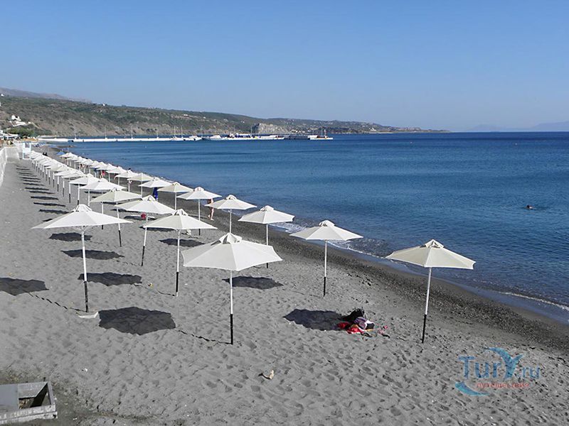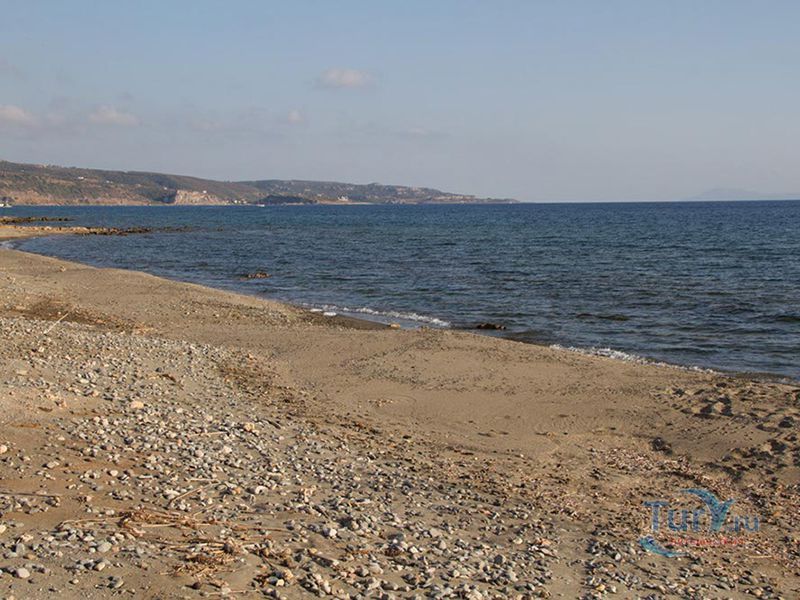Большая часть пляжа - помесь гальки с песком. А вот в западной оконечности преобладает песок. Здесь хорошие места для спокойного отдыха.