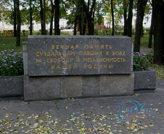 Вечный Огонь - памятник суздальцам, погибшим в Великой Отечественной войне, установлен в городском сквере на углу улиц Ленина и Васильевская. Открытие состоялось 9 мая 1985 года. Под четырехугольным белым бетонным сводом с датами "1941-1945" на невысоком постаменте лежит солдатская каска, перед которой горит Вечный огонь. Сбоку выстроена невысокая стена, на которой укреплены таблички с поименными списками солдат, павших на фронте. Архитектором данной композиции выступил О. Кирюхин, воплотил замысел скульптор В. Нестеров.