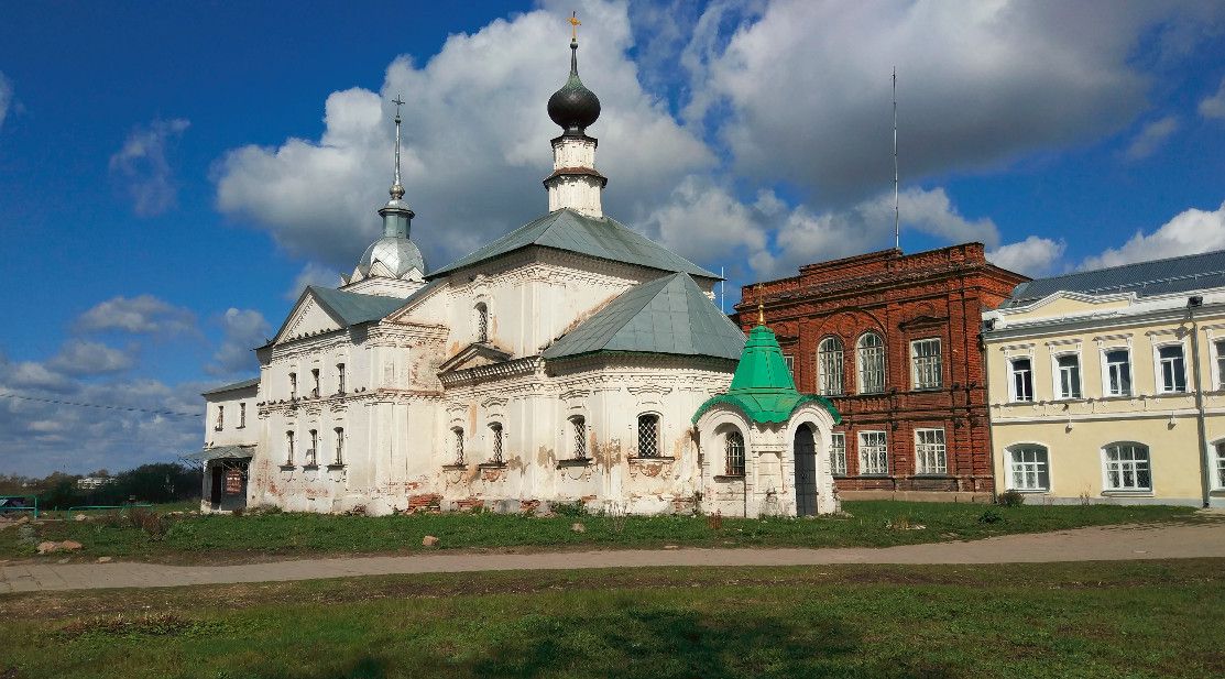 Кресто-Никольская церковь стоит у северной части торговых рядов, и выходит на две улицы - Ленина и Старую. На улицу Ленина смотрит желтая часть здания - основной объем одноглавой церкви, на стенах которого выделяются беленые узорчатые карнизы, фронтоны и напоминающие барочный стиль карнизы. Церковь была поставлена на месте памятной часовни, которая знаменовала избавление города от сильнейшего морового поветрия в 1654 году. По древнему обычаю, суздальцы решили отслужить молебен в городе на пересечении дорог. Крестом дороги сходились в этом месте: одна шла по теперешней Старой улице и берегом реки, другая, пересекающая ее, от Царевской церкви под Кабацкую гору. В знак избавления от "морового поветрия" была поставлена часовня, которая в 1770 году была заменена каменной церковью в честь Креста с приделом Николая Чудотворца. Церковь эта небольшая, кубообразной формы с барочными наличниками, перекрытая на четыре ската, с одной главкой. В XIX веке западная часть Кресто-Никольской церкви в Суздале была перестроена, добавилась широкая трапезная и колокольня со шпилем, хорошо видные от Старой улицы и закрывающие для обзора более старую часть церкви. Первоначально здание было окрашено в красный цвет, наличники и карнизы - в белый. В восточной части, около алтарной абсиды, находится небольшая каменная часовня в память о старой.