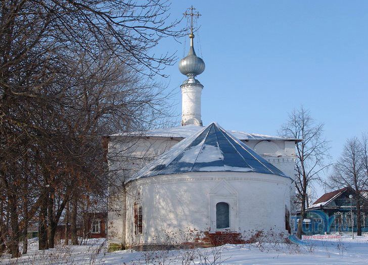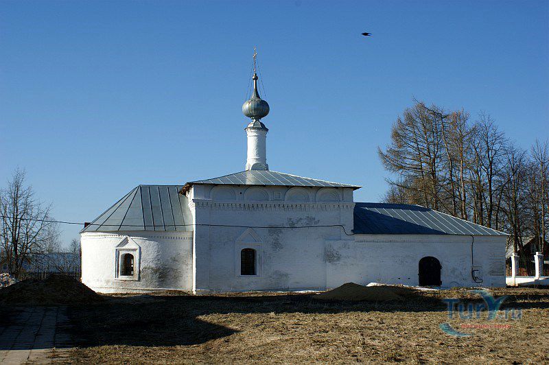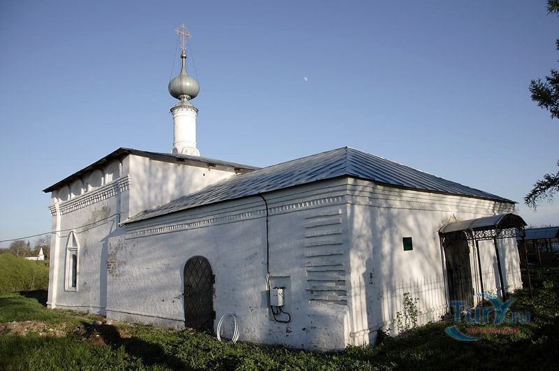 В начале XVII века на месте этой церкви существовала деревянная церковь в честь Зосимы и Савватея Соловецких, которая была заменена ныне существующей каменной. Здание церкви представляет собой куб, завершенный сомкнутым сводом, с востока оно имеет одну полукруглую абсиду, с запада - небольшую паперть, с севера - придел. На фасадах основного куба здания сохранились декоративные закомары. Эта церковь является единственной для суздальской архитектуры XVIII века, копирующей в миниатюре установившиеся к тому времени крупные одноглавые храмы.