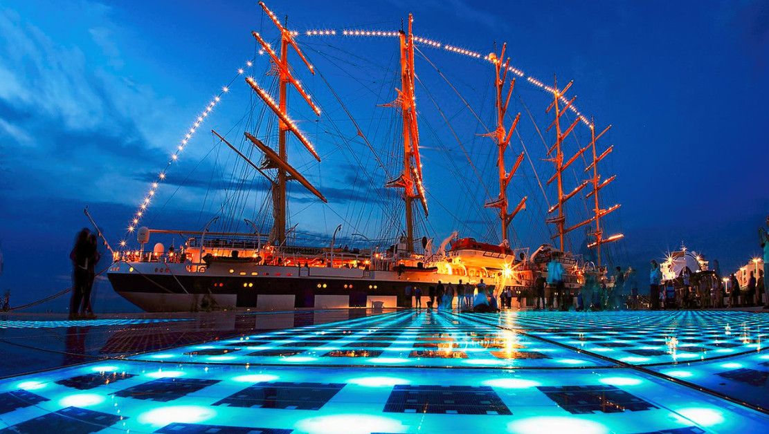 Каждую ночь на набережной разворачивается потрясающее цветомузыкальное шоу - разноцветные переливы "ночного солнца" под изумительное музыкальное сопровождение "морского органа". Эти инсталляции - праздник для всех ваших чувств.