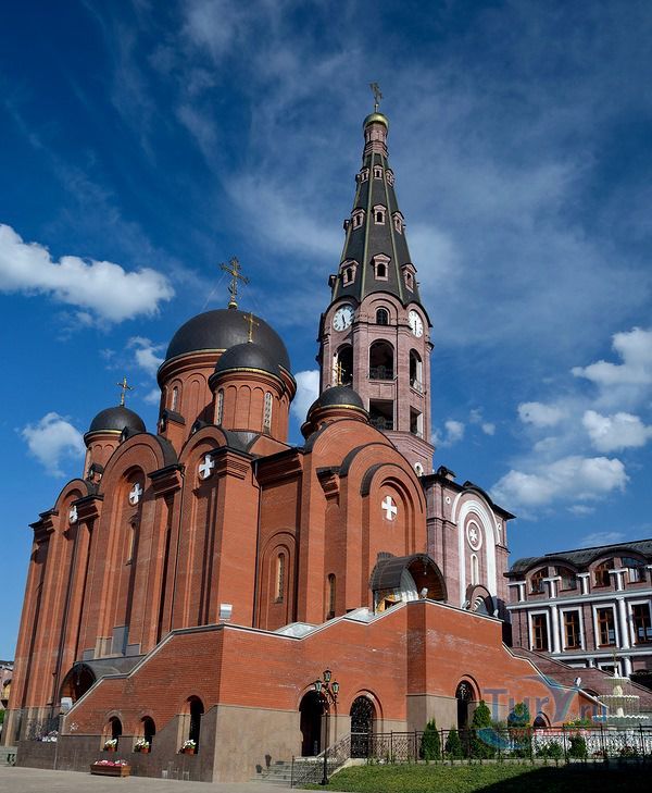 Собор Пресвятой Троицы является главным храмом комплекса Свято-Троицкого мужского монастыря. До второй половины XVIII века все храмы, колокольня и прочие здания монастырского комплекса были деревянными. В 1753 году на месте деревянной церкви был построен каменный двухэтажный храм типа восьмерик на четверике с боковыми портиками и западным притвором, который был вновь перестроен в 1805 - 1808 годы. В это же время была возведена отдельно стоящая трехъярусная колокольня, ныне колокольня Свято-Троицкого мужского монастыря. В 1801 году с северной стороны главного храма была построена церковь Сергия Радонежского. Во время пожара 1906 года монастырь со всеми церквами и постройками сильно пострадали.