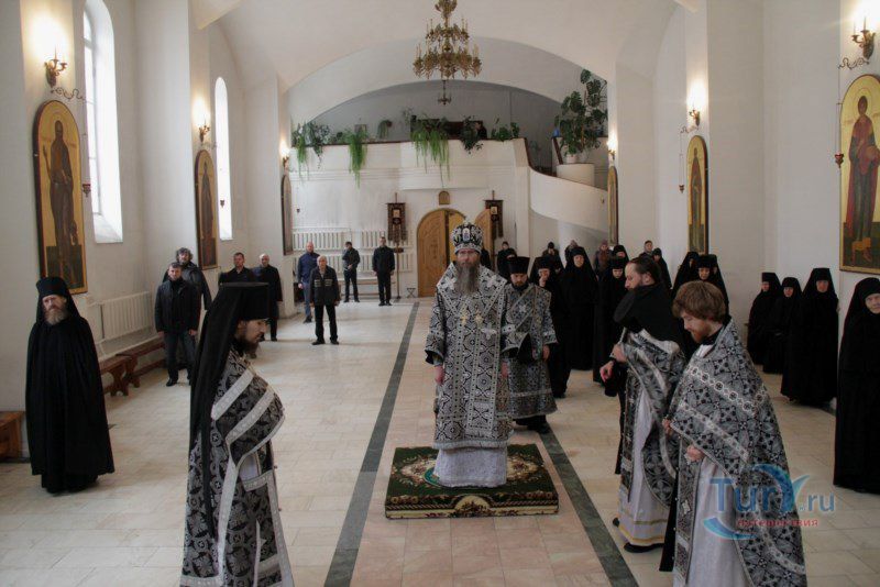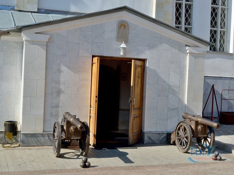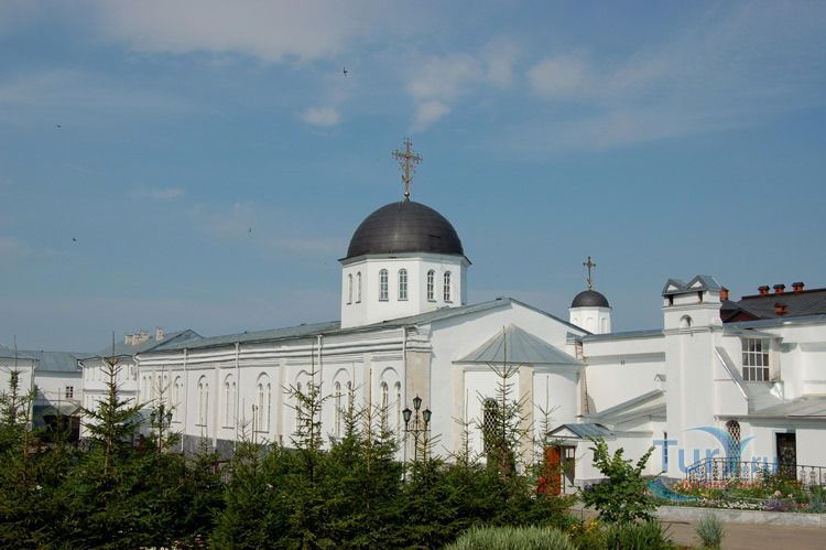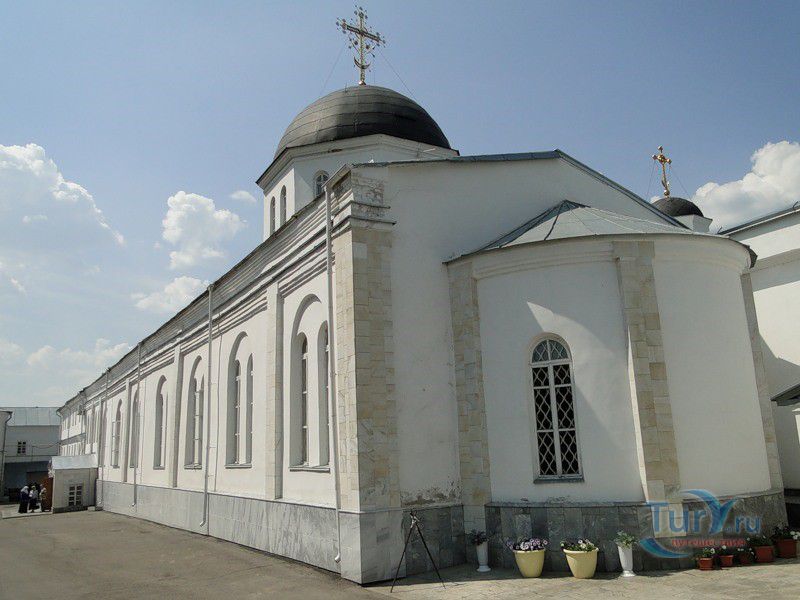 Церковь преподобного Сергия игумена Радонежского располагается в здании Келейного корпуса комплекса Свято-Троицкого мужского монастыря. Кирпичная одноглавая трапезная церковь была построена с северной стороны главного Собора Пресвятой Троицы в 1801 - 1817 годы. Над трапезной в 1830 - 1848 годы находился придел Иоанна Богослова. В 1848 году с левой стороны церкви, над могилой схимонаха Вассиана, был заложен придел в честь Казанской иконы Божией Матери, освященный в 1849 году. В 1905 году под этим приделом из усыпальницы была устроена пещерная церковь, где под спудом покоились мощи схимонаха Вассиана. В 1906 году обновленную церковь с двумя престолами освятили во имя преподобного Сергия Радонежского и образа "Божией Матери Казанской". Церковь преподобного Сергия игумена Радонежского была закрыта в 1920-ые годы. В конце 1990-х годов ее восстановили, во время реставрации был сооружен новый купол в неовизантийском стиле. Под Казанским приделом в 1997 году восстановили Пещерный храм преподобного Серафима Саровского.