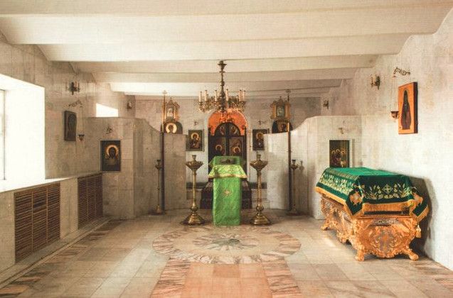 Пещерный храм преподобного Серафима Саровского располагается в здании Келейного корпуса комплекса Свято-Троицкого мужского монастыря. Храм восстановили в 1997 году под Казанским приделом церкви Сергия Радонежского. По преданию, именно в алатырский монастырь для своего иноческого подвига был направлен Прохор Мошнин, позднее прославленный как Серафим Саровский. В Пещерном храме был погребен схимонах Вассиан, настоятель монастыря в конце XVII века. Почитание преподобного Вассиана началось с 1748 года, когда во время расчистки места под строительство каменного здания Собора Пресвятой Троицы был обретен гроб с мощами. Мощи утрачены и точное место последнего погребения подвижника неизвестно, так как перед закрытием обители монахи скрыли от безбожников мощи. В 1904 году был обустроен колодец недалеко от усыпальницы святого Вассиана, куда он, по преданию, сбросил свои вериги и власяницу. В пещерном храме во имя Преподобного Серафима Саровского бьет Вассиановский источник, целебная сила воды которого помогает от многих болезней.