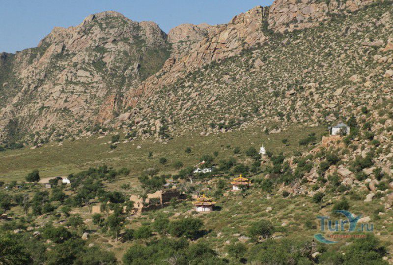 Монастырь Овгон (Монастырь Эрдэнэ Кхамба) расположен в центральной Монголии, в провинции Булган, у подножия горы Хогно Хан. Монастырь Эрдэнэ Кхамба в 1660 году основал первый Богдо-гэгэн Монголии Занабазар в честь своего учителя ламы Эрдэнэ, который и стал первым настоятелем монастыря. Место для строительства монастыря было выбрано не случайно, ещё в 842 году на горе Хогно Хан поселился тибетский буддийский монах, проживший здесь, молясь и медитируя, долгие годы, а в 1612 году на священной горе был возведен небольшой храм. Монастырь, построенный Занабазаром, имел 13 храмов, центр для медитации и был способен вместить более 1000 монахов одновременно. Эрдэнэ Кхамба состоял из двух монастырей, верхний монастырь назывался Залуу Хийд (Храм Начала), нижний - Овгон Хийд (Храм Старейшины). В 1688 году монастырь был полностью разрушен и разграблен армией правителя западно-монгольского Джунгарского ханства Галдан-Бошогту. Непримиримый спор между Занабазаром, правителем Халхи, желавшим войти в состав империи Цин, и Галдан-Бошогту - его ярым противником, закончился войной. Армия Галдан-Бошогту вторглась в Халху, во время перехода через гору Хогно Хан воины заметили золотые крыши монастыря и напали на него. Храмы и святыни были разрушены, все монахи убиты. В 1700 году нижний монастырь был заново отстроен, он состоял из трёх храмов и четырёх святилищ, в монастыре жили 200 буддийских монахов. В 1937 году, во времена религиозных репрессий в Монгольской Народной Республике, монастырь был снова разрушен, 20 лам высшего ранга расстреляны, остальные сосланы в лагеря. Восстановление монастыря началось в начале 90-х годов XX века, после победы Демократической революции. Были построены главный храм Хугну-тарни, несколько пагод и субурганов. Верхний же монастырь Овгон Хийд так и остался лежать в руинах. К развалинам ведёт крутая извилистая тропа, протяжённость пути - около двух километров. Овгон Хийд был построен посреди берёзовой рощи, большой редкости для местного ландшафта. Некогда пышная роща сейчас безжизненна, от неё остался лишь частокол сухих стволов - местные жители верят, что деревья "умерли" одновременно с жестоко убитыми монахами. Руины монастыря постепенно поглощают густые заросли, но массивные каменные стены Овгон Хийда устояли против вандалов и времени, в развалинах монастыря ещё можно разглядеть контуры храмов, святынь и внутренних двориков.
