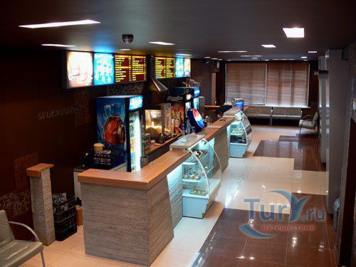Перед сеансом посетители могут насладиться ароматным кофе, вкусными десертами. В кинотеатре имеется кинобар, где продают все атрибуты кинопросмотра - попкорн, пепси-колу и прочее, кафе-мороженое и бар Голливуд.