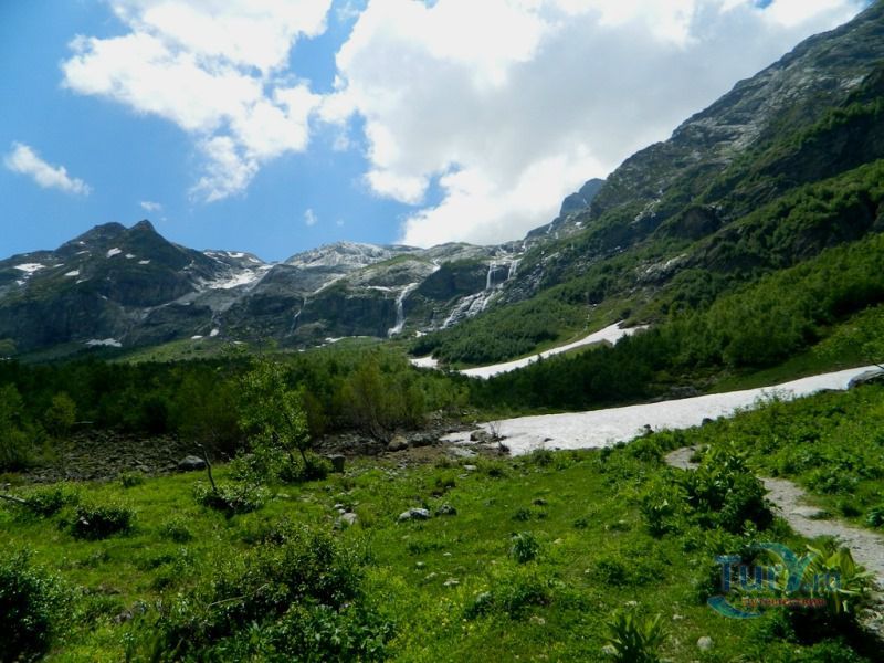 От Софийских водопадов отлично просматривается вся долина реки Софии до впадения в реку Псыш, горные хребты, сходящиеся к Архызской котловине.