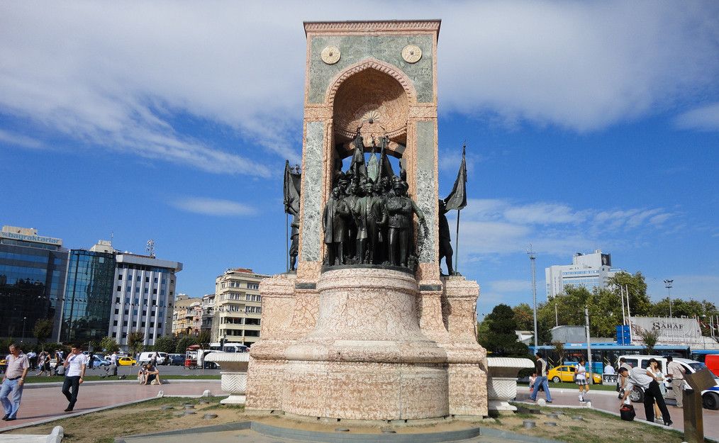Памятник Республики по проекту итальянского скульптора Пьетро Каноника торжественно открыли 8 августа 1928 года в честь основания Турецкой республики. Величественная арка в восточном стиле содержит скульптуры выдающихся деятелей Турции - Мустафы Кемаля Ататюрка, Мустафы Исмета Инёню и Февзи Чакмака. В группе на южной стороне монумента, по левую руку от центральной фигуры Ататюрка, расположены скульптуры Климента Ворошилова и Семёна Аралова.
