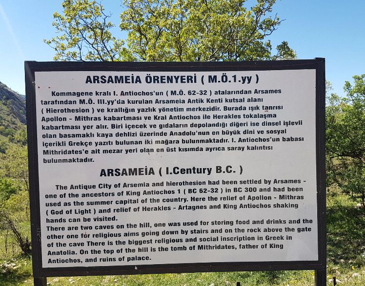 Античный город Арсамея, что на восточном берегу реки Кахта, напротив крепости Старая Кахта, являлся летней резиденцией и административным центром царства. Был основан предком Коммагенов Арсемезом в начале II века до н.э., это можно установить из летописей царя Антиоха I. На южной части триумфальной дороги находится рельефный камень Митраса, на той же платформе находится рельефный камень с изображением рукопожатия Антиоха и Геракла. Перед ними стоит самая большая греческая летопись Анатолии, с того места где стоит эта летопись начинается тунель, спускающийся на глубину 158 метров, на восточной стороне летописи находится подобный каменный коридор. На надхолмной платформе расположен могильный храм и дворец Митридата Кальниха. Во время проведенных здесь раскопок было обнаружено множество останков памятников, головы одной из цариц и самого Антиоха. Развалины Арсамеи находятся в 60 километрах от Адыямана.
