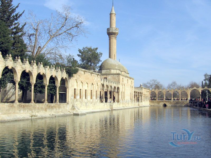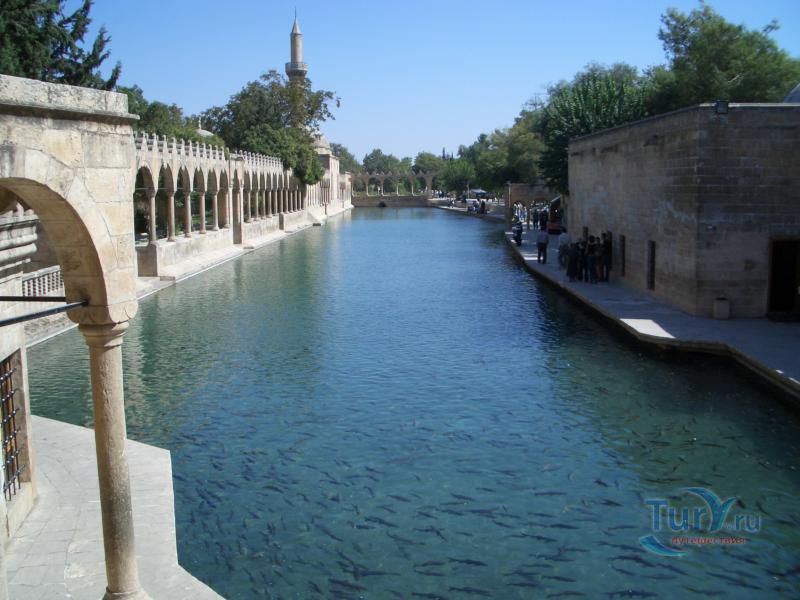 Озеро Балыклы имеет длину 150 метров и ширину 30 метров. Его глубина около 3-5 метров. Карпы этого озера считаются священными. Рядом с озерами виднеются мечети Халила - уль - Рахмана и Ризванийе, которые стоило бы осмотреть. Это место известно как место, где был брошен в костер пророк Авраам. Язычник Нимрод приказал бросить Авраама в костер. Но на помощь Аврааму пришел Бог, превратив огонь в воду, а дрова в рыб, и Авраам остался жив, и позже сверг Нимрода и его идолов. И так возникло священное озеро Halil-ür-Rahman Göl. Рядом образовалось еще одно озеро - Aynzeliha. По той же легенде, дочь Нимрода, полностью разделявшая идеи Авраама, прыгнула в огонь за своим учителем. Бог спас и ее. В озерах и сейчас живут рыбы, покормить которых - обязательная традиция. К тому же, кто увидит белую рыбу - тому будет обеспечен рай.