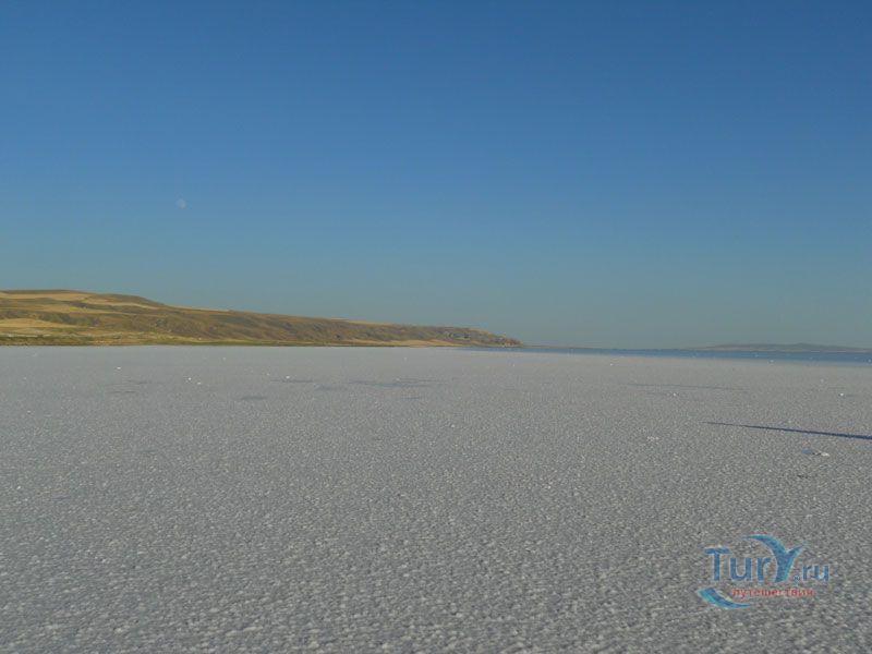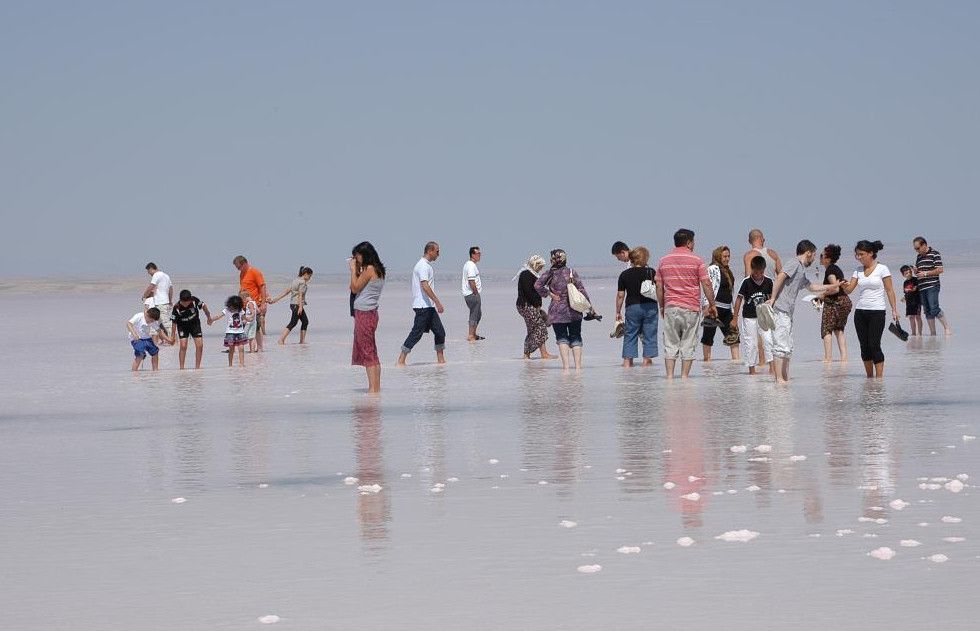 Озеро Туз - это второе по величине озеро в Турции. Переводится с турецкого как солёное озеро. Расположено на Анатолийском плоскогорье на высоте 900 метров над уровнем моря. Соленость воды в озере составляет 32,9%, что даже больше чем в Мертвом море. Озеро бессточное, в него не впадает никаких рек. Питается от подземных источников и осадков. Имеет длину 80 километров, ширину около 50 километров и среднюю глубину - 2 метра. Площадь зимой и весной меняется от 1600 до 2500 кв. км. Озеро Туз просто уникально по своей природе и виду. Весной оно за счет зимних и весенних осадков разливается и увеличивается в несколько раз. Летом же, когда вода испаряется оно становится совсем небольшим, и на его поверхности образуется плотная кора из соли, белая как снег, толщиной всего до 50 сантиметров, благодаря чему по озеру в прямом смысле можно ходить пешком, что и делают каждое лето сотни любителей природы со всех уголков мира. Весной здесь особенно можно понаблюдать за большими стаями красивых птиц. В районе озера обитают такие красивые виды птиц как стрепет, серый журавль, шилоклювка, луговой лунь, дрофа, белолобый гусь, ржанка адаптировавшиеся в этой солёной среде, а в окрестных деревнях можно увидеть степную пустельгу. На озере расположены три соляные шахты, которые добывают более 60% от всей потребляемой в Турции соли. С 2001 года озеро Туз и его окрестности являются особо охраняемой природной территорией.
