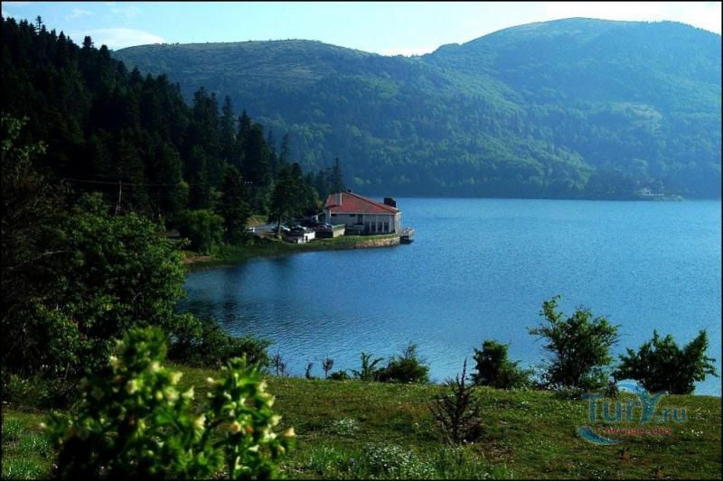 Озеро Абант - пресноводное озеро, образовавшееся в Абантских горах на высоте 1328 метров в результате большого оползня. Имеет Площадь 128 гектаров и среднюю глубину 18 метров. Благодаря необыкновенной природной красоте озера и его окрестностей, покрытых густыми живописными лесами,богатой флоре и фауне и чистейшему воздуху этих мест, в 1988 году озеро Абант было наделено статусом национального природного парка Турции. Природный парк озера Абант - популярное место отдыха не только турецких, но иностарнных туристов. Берега озера покрыты лесами, богатыми редкими видами деревьев, таких, как черная сосна, бук, лиственница, граб, ясень, ива, можжевельник, тамариск, лещина, мушмула, а также здесь встречаются цветущие кустарники (роза) и ягоды (малина, ежевика, клубника), редкие целебные травы. Воздух, вода и почва здесь настолько чисты, что это создает отличные условия для жизни здесь диких оленей. Кроме этого тут обитают лисы, зайцы, шакалы, европейские косули, некоторые виды хищных птиц, а в озере плавают выдры и главное водится эндемичный вид форели - кумжа абантская, имеющая удивительно красивый жёлтый цвет с чёрными беспорядочными пятнышками. На берегах озера есть несколько небольших уютных отелей, а местные жители предлагают массу всяческих развлечений и услуг. Здесь вам предложат покататься ослах и конных экипажах, приобрести сделанные заботливыми руками местных рукодельниц тёплые шерстяные носки в зимнее время, а также попробовать различные виды продуктов из местных фермерских хозяйств. Кроме того, Непременными мероприятиями этого природного парка являются пикник, кампинг, спортивная ловля рыбы, прогулки пешком, на лодке, фаэтоне, верхом, а также зимний естественный ледовый каток.