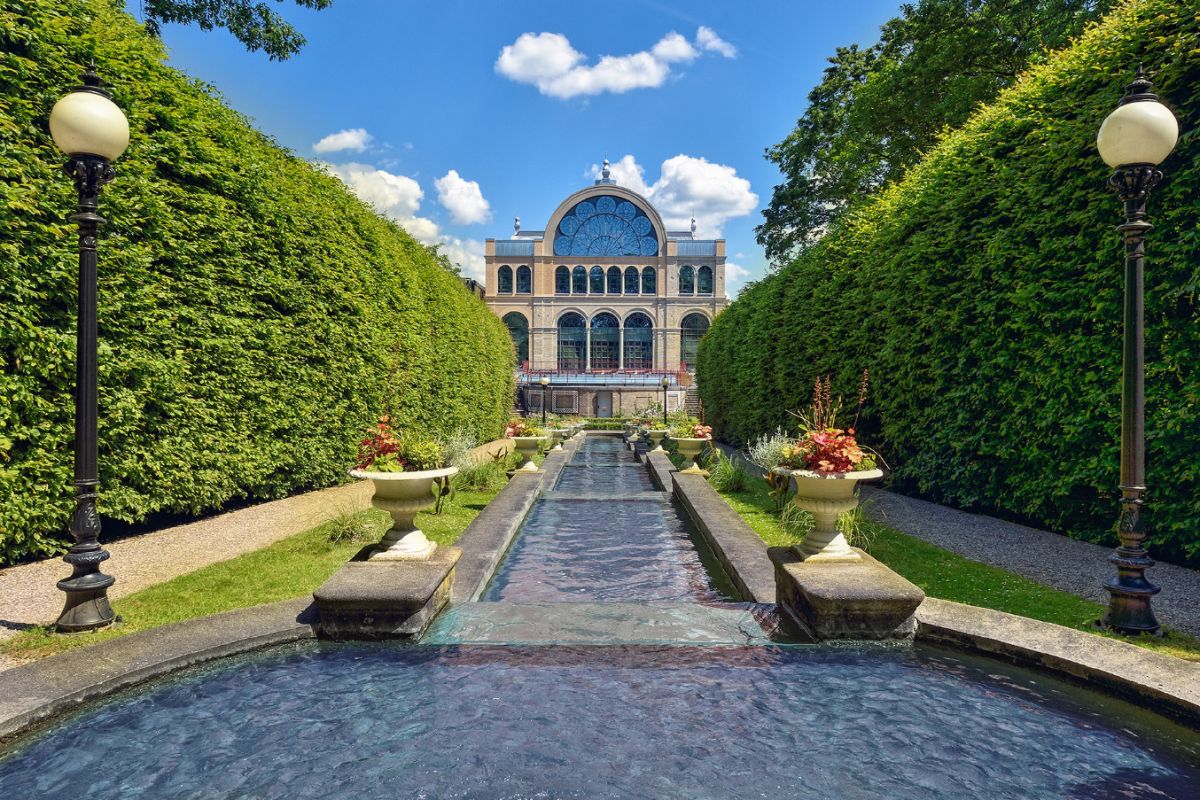 Садово-парковый ансамбль Флора - проект известного ландшафтного прусского архитектора Петера Йозефа Ленне. Флора - наглядное пособие по истории садово-паркового искусства в Европе. Здесь разбиты цветочные клумбы стиля французского барокко. Недалеко высажены разреженные деревья, стоящие как положено в английском саду. В стиле итальянского Ренессанса разбиты аллеи, затененные листвой выстроившихся вдоль грабов, а также водяные каскады и находящийся здесь «Храм Флоры». Прогуливаясь по парку, можно полюбоваться средиземноморским садом, вересковым лугом, «садом ароматов», зарослями папоротника, «оврагом рододендронов», большим прудом.