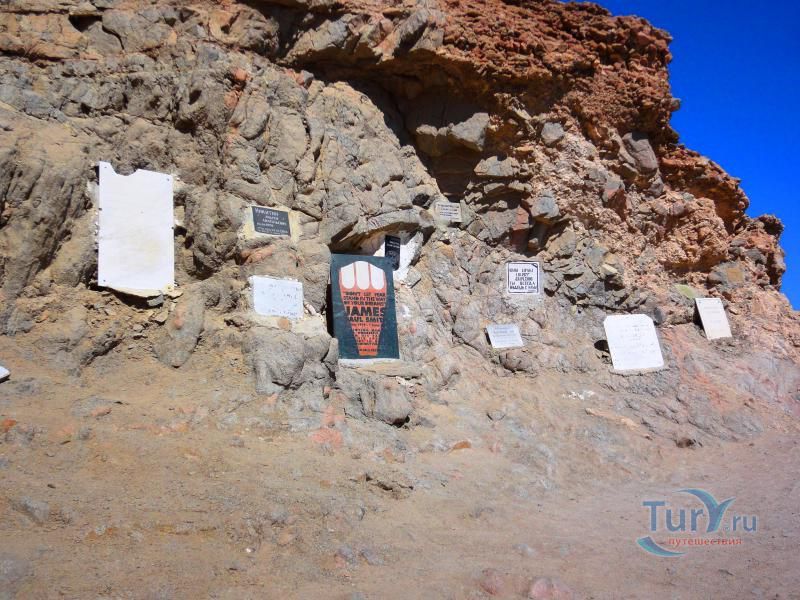 В конце площадки скала, сплошь увешанная могильными плитами, есть и русские…
