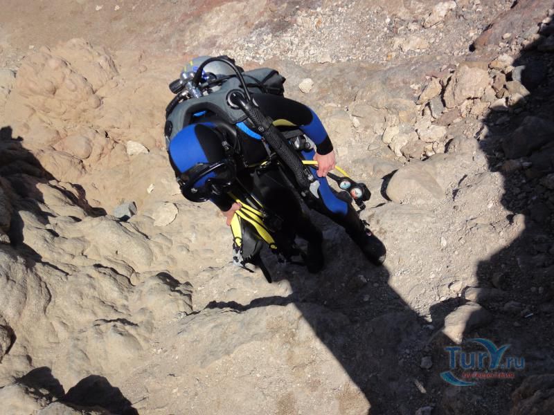 Когда-то, миллионы лет назад, уже выросший на два метра сплошной стеной коралл вдруг перестал расти по причине какого-то каприза природы. Края же его, продолжив рост, срослись только через сотни тысяч лет. Получилась огромная коралловая дыра, названная голубой из-за своего небесного цвета. Это огромное отверстие диаметром приблизительно 150 метров, которое в виде сужающегося колодца отвесно уходит вниз на глубину до 110 метров. На внутренней стене колодца на глубине 52 метра перед Вами откроется знаменитая Арка длиной 26 метров, выходящая в открытое море. Света здесь мало, до таких глубин доходит лишь синяя составляющая солнечного света, откуда и пошло название дайв-сайта.