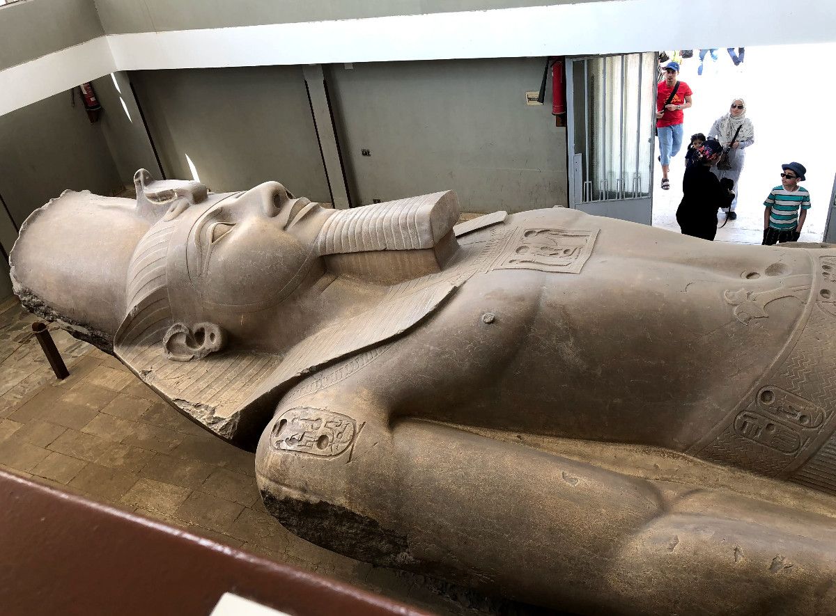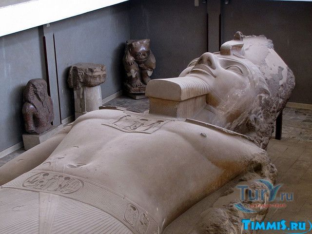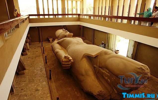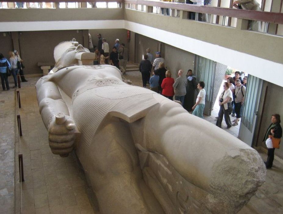 Для одной из таких древностей в Мемфисе даже был построен специальный павильон. Речь идет о 10-ти метровой статуи Рамсеса II, которая была вырезана из известняка и равна только 10 метрам из-за того, что у нее отсутствует 3 метра нижней части ног. Кстати, его близнец, из розового гранита, сохранился во весь свой рост и установлен на площади перед вокзалом «Рамсес» в Каире.