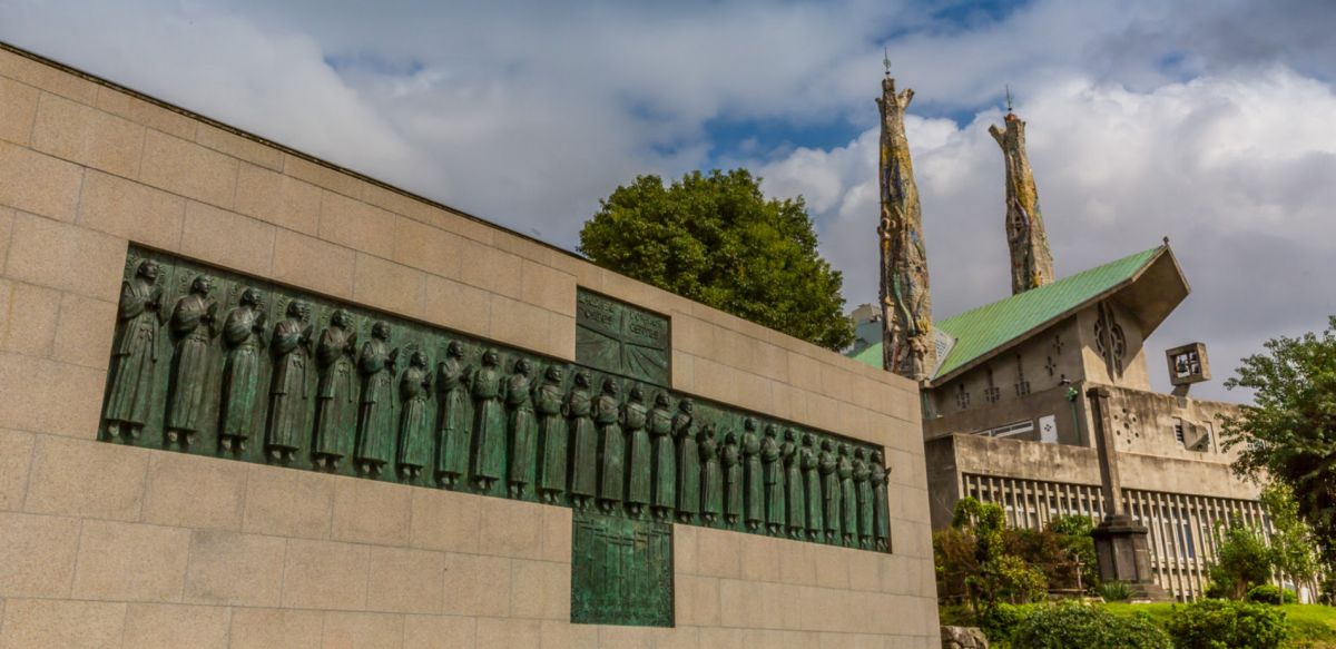 Католическая Церковь развила активную миссионерскую деятельность в Азии после образования испанских и португальских колоний. В 1493 году римский папа Александр VI поделил открытые земли между Португалией и Испанией и доверил миссионерскую деятельность различным монашеским орденам. Начиная с 1549 года, когда в Японию прибыл иезуит Франциск Ксаверий, католицизм стал постепенно распространяться на японском архипелаге. К концу 16-го века, когда в Японии усилилось политическое движение под руководством Тоётоми Хидэёси, там уже было несколько сот тысяч католиков. Гонения на католиков начались в 1587 году. Тоётоми Хидэёси использовал преследования христиан как ответ на экспансию европейских государств. В начале 1587 года по приказу Тоётоми Хидэёси были арестованы 26 католиков, которые были казнены 5-го февраля 1587 года. Арестованных христиан привезли в город Мияко, где по приговору им должны были отрубить уши и носы, однако, приговор был смягчён и им отрезали только часть левых ушей. Затем их провели по улицам города, чтобы, чтобы их вид заставил христиан отказаться от веры. Их лишили жизни одновременно, распяв на крестах. Поначалу их приковали к крестам на земле, которые потом воткнули в землю в ряд на расстоянии нескольких метров друг от друга. Потом каждого из них проткнули копьём. После казни их одежда и оставшаяся кровь были собраны местными католиками и их стали сразу же почитать святыми, приписывая им многочисленные чудеса.