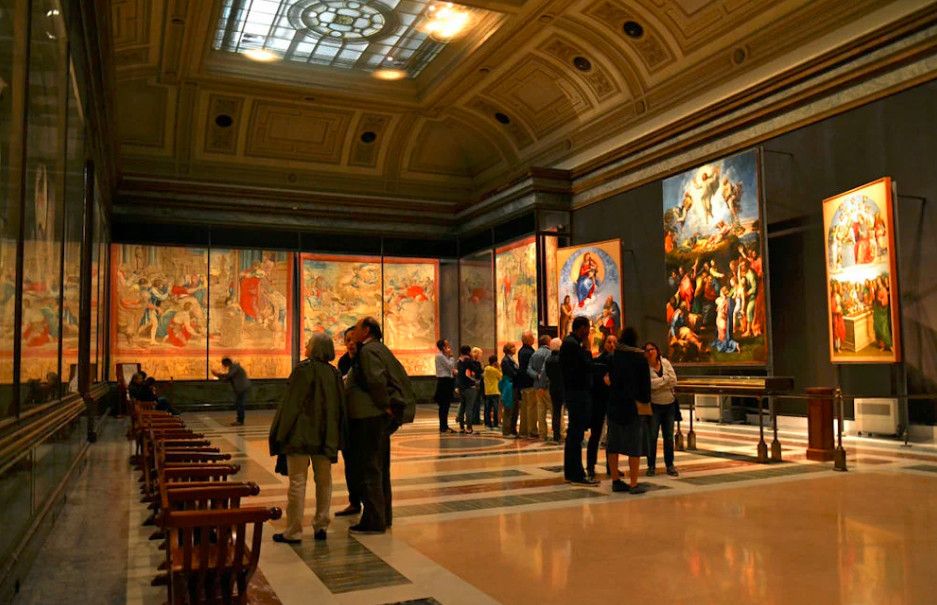 Ватиканская пинакотека расположена в 300 метрах на север от собора святого Петра. Она была основана папой Пием VI в 1908 году. Первоначально она размещалась в Бельведерском дворце, а в нынешнее здание переехала в 1932 году. Здание построил архитектор Лука Бельтрами. Для строительства специально была выбрана открытая местность - это способствует хорошему освещению картин.