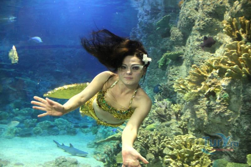 Самая впечатляющая и незабываемая часть экспозиции – прогулка внутри прозрачного акрилового туннеля под толщей воды, где живут своей безмятежной жизнью представители морских глубин, обитающих от Амазонки до Южной Америки! По ходу движения в туннеле Океанариума неожиданно возникает скалистый риф, следом грот с затонувшим кораблем, внутри которого плавают русалки. Просторы открытого моря и проплывающие вокруг обитатели морских глубин, особенно грозные акулы – навсегда оставляют неизгладимое впечатление.