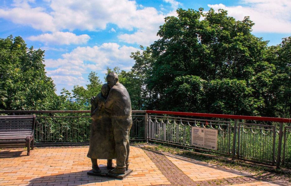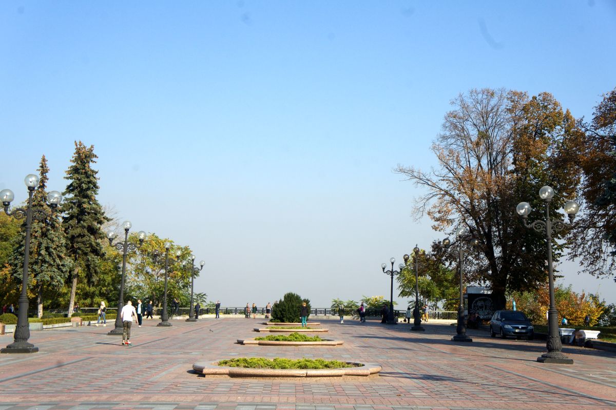 Со смотровой площадки, расположенной возле Мариинского парка, открывается величественный вид Днепра, киевских холмов, левого берега столицы, а также Верховной Рады и стадиона «Динамо».