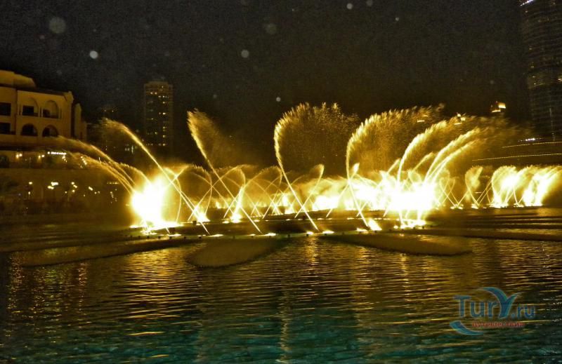 Фонтан мирового класса со встроенным световым и звуковым шоу в центре Дубая, в районе Downtown Burj Dubai - это архитектурный элемент города, который славится всемирным водноинженерным чудом и является одним из крупнейших и интереснейших городских аттракционов, который привлекает внимание десятков миллионов туристов ежегодно. Его длина составляет 275 метров (приблизительно два футбольных поля), что на 25% больше известного американского «поющего» фонтана Ballagio в Лас-Вегасе. Мощные, разбрызгивающие воду, сопла поднимают струю воды на 150 метров (высота 50-этажного здания). С помощью 6600 световых индикаторов и 50 цветных прожекторов создаются свыше тысячи вариантов световых представлений для зрителей. Подборка музыкального сопровождения для светового представления также весьма разнообразна – от классических до современных арабских и мировых музыкальных шедевров. Уникальный фонтан расположен рядом с Burj Dubai, самым высоким в мире зданием, и торговым и развлекательным центром Дубая – Dubai Mall. Дизайнером-архитектором уникального фонтанного чуда стала калифорнийская компания WET Design, приложившая свои силы и мастерство при строительстве известного американского «поющего» фонтана Bellagio. Проект дубайского фонтана разработан специалистами Turner Construction International.