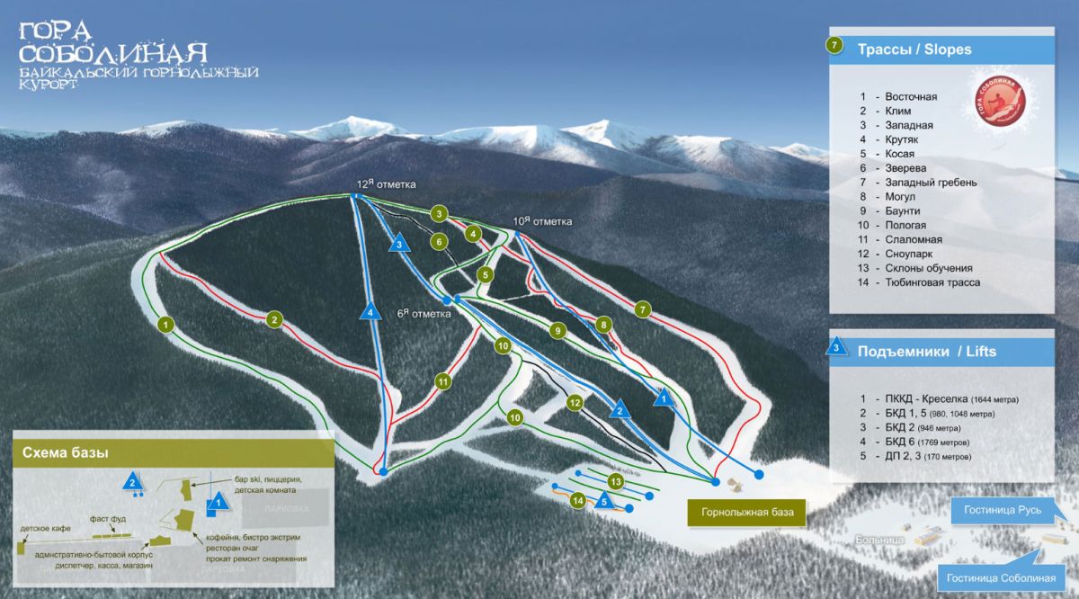 Излюбленное место для катания на горных лыжах - это гора Соболиная, расположенная на берегу Байкала, в 162 км от Иркутска и 320 км от Улан-Удэ. Тысячи поклонников горнолыжного спорта ежегодно приезжают отдохнуть на горе Соболиной.