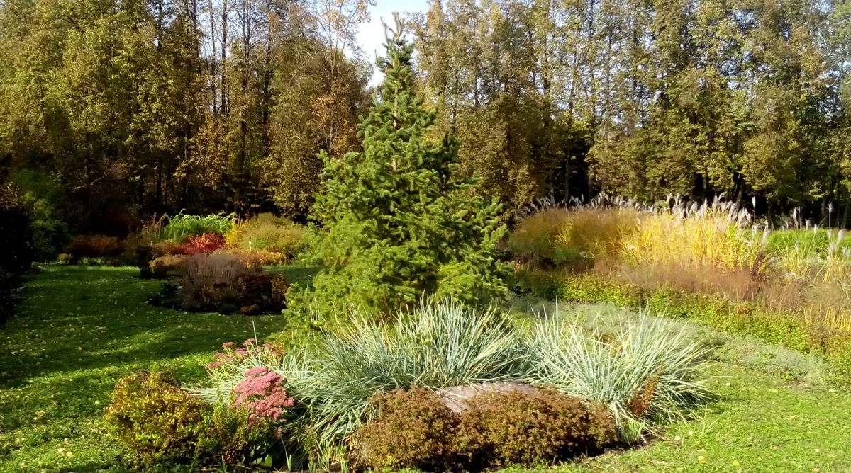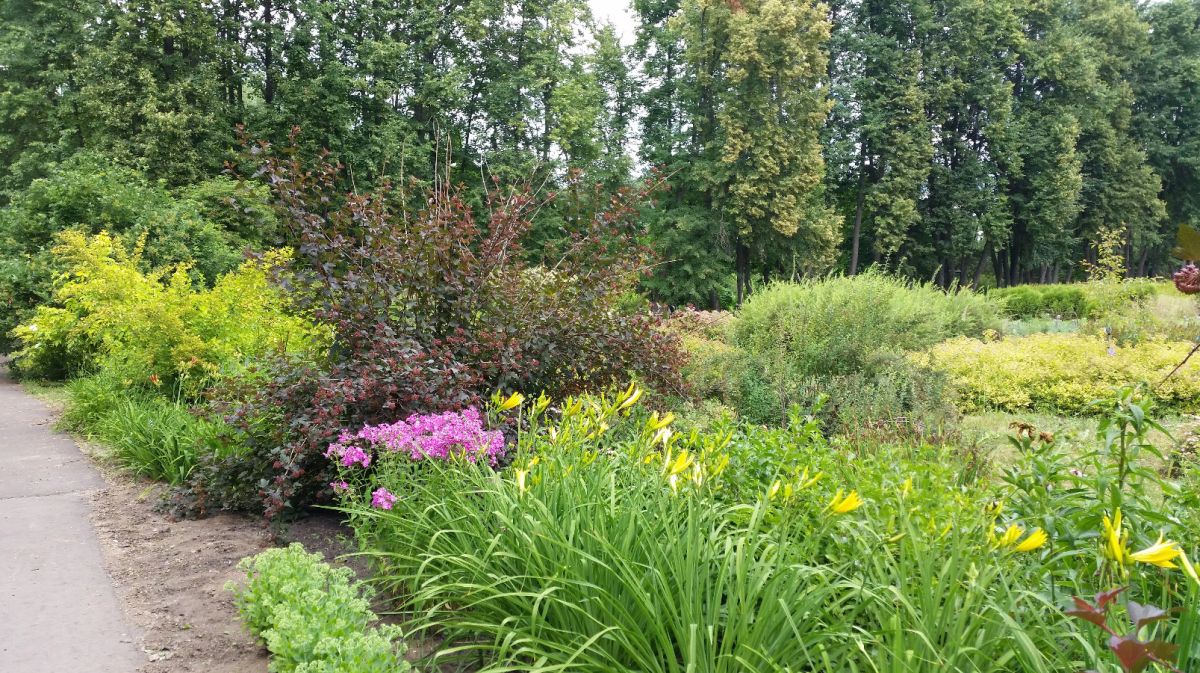 Весь сад разделен на отделы: дендрарий, отдел цветоводства с розарием, питомник, плодовый сад, систематикум, отдел местной флоры и полезных растений, мичуринский скверик и другие.