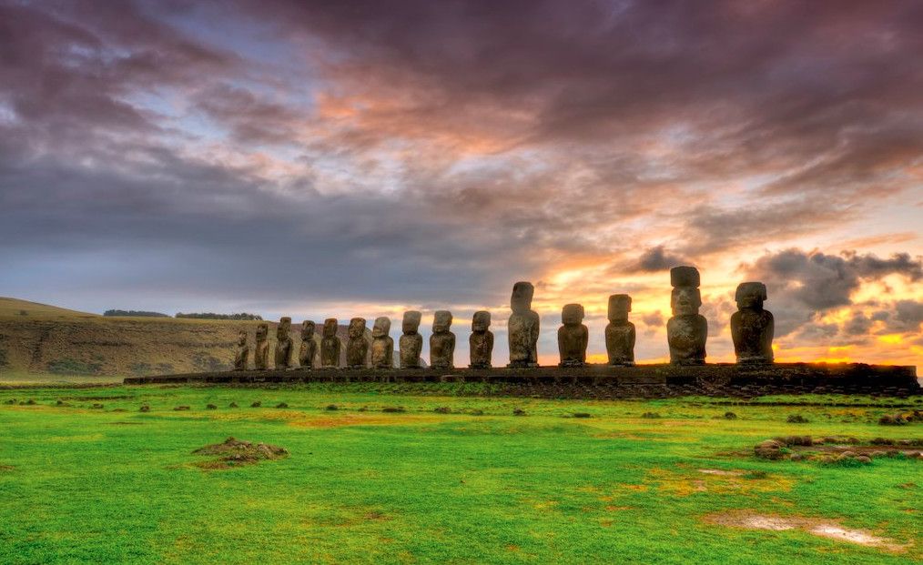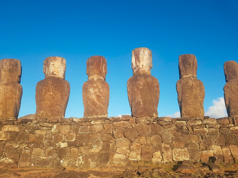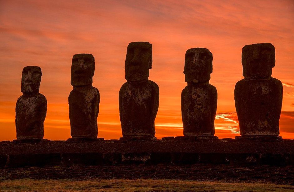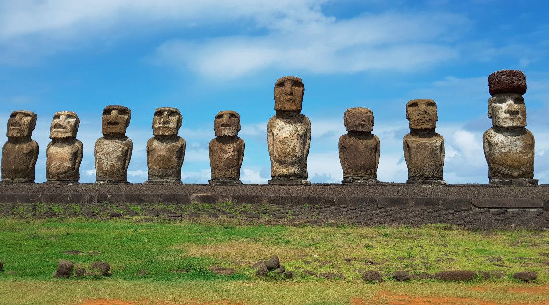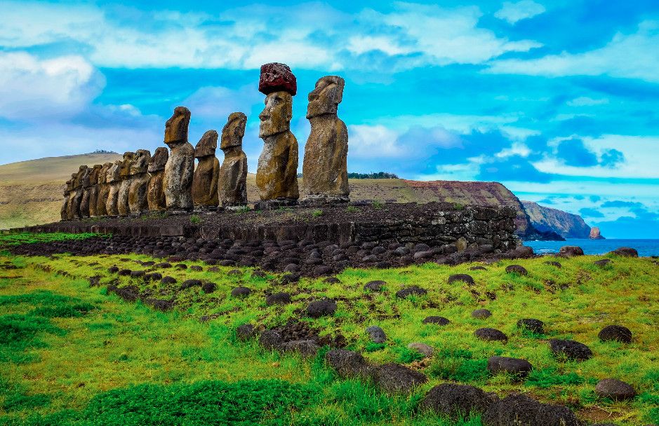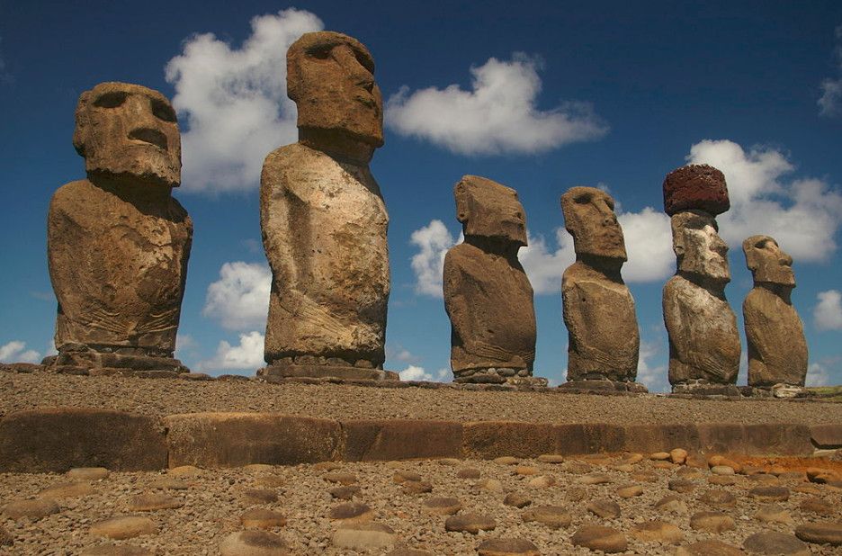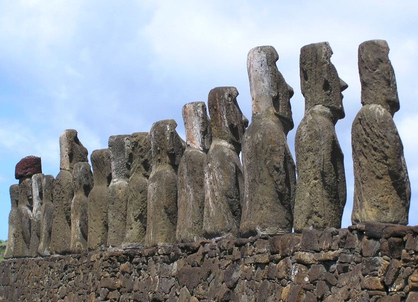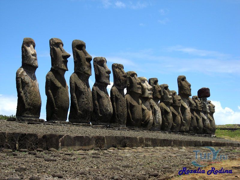 Аху Тонгарики находится недалеко от вулкана Рано Рараку и является самой большой церемониальной каменной платформой на острове Пасхи с 15 статуями моаи различного размера. Статуи Моаи смотрят лицом вглубь острова, повернувшись спинами к океану. Недалеко от этого Аху на земле валяются поверженные статуи истуканов, неподалеку от которых лежат и их головные уборы красного цвета - так называемые шапки пукао, которые украшали головы величаво стоящих истуканов. Шапки изготавливались отдельно и водружались на головы уже стоящих на постаменте истуканов. До сих пор остается загадкой не только то, как перемещали и устанавливали истуканов на постамент, но и то как им на головы ухитрялись водрузить многотонные шапки. Ведь в те времена на острове не было абсолютно никакой техники. В ход могли идти только человеческая сила и подручные средства из камней и дерева.