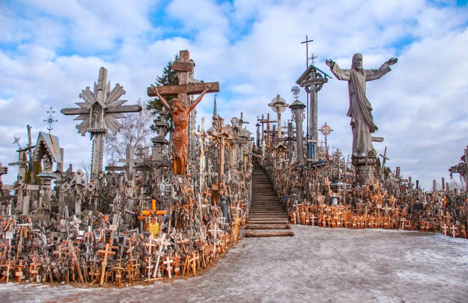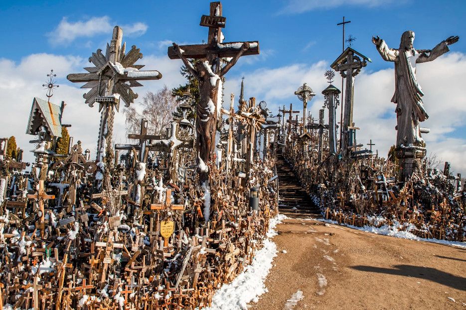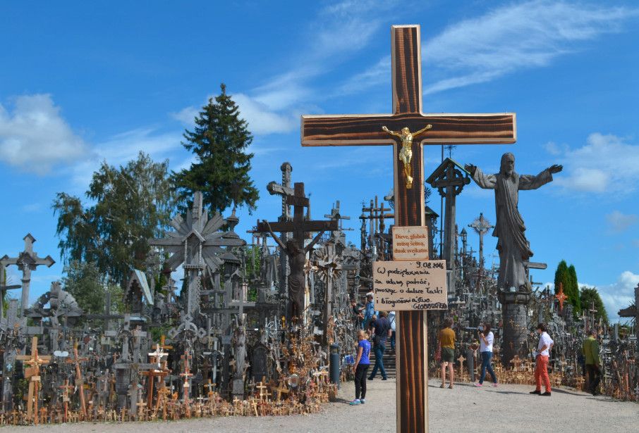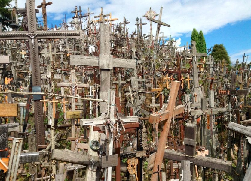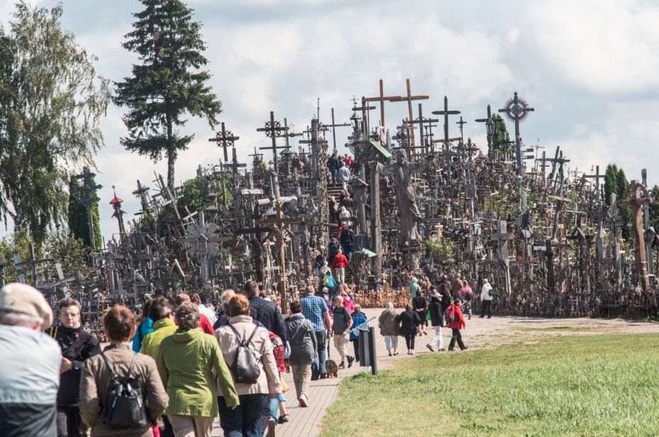 Существует в Литве место, которое является святым для всех ее жителей. Правда, не только для литовцев. Располагается Гора Крестов возле города Шауляй. В этом месте, которое посещают паломники из разных стран, люди надеются приблизиться к Богу. В наше время никто точно не знает, когда возник обычай ставить кресты на холме под названием Юргайчу. История холма, а также с ним связанных обычаев, столь же древняя, как и история страны. С горой связано множество легенд, у ее подножия часто происходили беспощадные сражения. Считается, что в языческие времена здесь находилось капище, но этому месту продолжали поклонятся и католики. В XIV веке на горе размещалось городище, которое было разрушено рыцарями Ливонского ордена. Новая история горы начинается с 1831 г., когда на ней были поставлены кресты в память об участниках бунта, казненных властями Российской империи. Большое количество крестов появилось после усмирения мятежа в 1863 г. Жители Литвы, отдавая дань памяти о своих земляках, как будто проявляли безмолвный протест властям. Шло время, количество крестов все возрастало. Кресты Юргайчу – символ Любви, Надежды и Веры. Они устанавливались в знак благодарности Богу и молитвенной просьбы о здоровье, защите и поддержке в трудную минуту. В советские времена с 1964 по 1984 были предприняты четыре попытки расчистить место поклонения, но кресты устанавливались опять. Сейчас на Горе Крестов находится около 50 тыс. распятий. Некоторые кресты, высотой в несколько метров, увешаны маленькими крестиками. Также тут находится крест Папы Римского — Иоанна Павла II, который в 1993 г. был с официальным визитом в Литве и оставил на этом холме крест, благословив отсюда страну. На горе можно увидеть и православные кресты, и символы других конфессий — звезду Давида, исламский полумесяц. Гора Крестов встречает всех верующих, которые приходят сюда, чтобы обратиться к Богу.