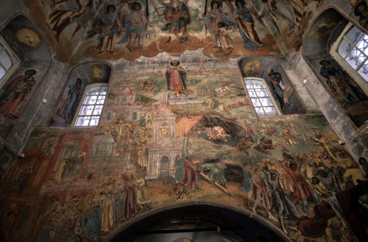 В первые годы XVII века на этом месте была поставлена деревянная часовня. В 1630 году ее сменила деревянная церковь, а в 1692 году построена существующая и ныне каменная церковь. Храм расположен на берегу Волги в северо-восточной части Кремля. Красные поверхности наружных стен выделяют белоснежные декоративные детали - наличники, полу-колонны, карнизы, делая церковь очень красивой. Роспись внутри храма заслуживает особого внимания. Она осуществлена артелью художников московского подрядчика Сапожникова в 1772 году. Сюжеты изображают смерть царевича Дмитрия, а также расправу толпы над убийцами, которая произошла 15 мая 1591 года. Большинство росписей посвящены библейской тематике. Например интерьер низкой трапезной части церкви расписан в 1772 году мастером Петром Хлебниковым нa темы библейских сказаний “О сотворении мира” и “О грехопадении Адама и Евы и изгнании их из Рая”. Из деталей интерьера интересна дверь трапезной, сохранившаяся со времен основания церкви. Полотно двери расписано и мастерски украшено коваными металлическими накладками ажурного рисунка. В храме выставлен знаменитый ссыльный набатный колокол, возвестивший горожанам o гибели царевича, и отбывший трехсотлетнюю ссылку в Сибири. В настоящее время храм является музеем.