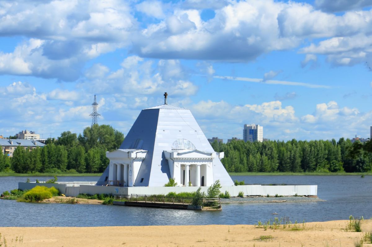 Храм-памятник в честь Нерукотворенного Образа Спасителя воздвигнут в Казани в XIX веке в память о воинах, погибших при осаде и взятии Казани в 1552 году. Храм состоит из 2-х частей. В наземной части находится храм в честь Нерукотворенного Образа Спасителя. В подземной - церковь-усыпальница в честь погибших при осаде и взятии Казани в 1552 году. Каменный храм, построенный в XIX веке в память о воинах, один из старейших казанских памятников и воинских мемориалов России. Памятник представляет собой поднятую на высокий постамент двадцатиметровую четырёхугольную усечённую пирамиду со всеми равными измерениями: длиной, шириной и высотой. С четырёх сторон входы в здание, украшенные греческими портиками и двумя дорическими колоннами. В храм со стороны главного входа ведут 20 широких каменных ступеней, с других - по 12 ступеней. Фронтоны портиков украшены лепными изображениями Георгиевского креста с идущими от него лучами. По углам пирамиды расположены четыре кельи, в которых жили монахи, служившие поминальные службы по павшим воинам. Окна в кельи заметны на краях памятника. Внутри памятника расположена церковь Нерукотворенного образа Спасителя, в память о царском знамени, бывшем при взятии Казани. Под здание ведёт сводчатый подземный ход, по спирали обходящий храм. По сторонам расположены гробницы, над украшениями в виде военной арматуры были надписи: "Больше сея любве никтоже имать, да кто душу свою положит за други своя"; "Возлюблении и прекраснии, неразлучни, благоленки в животе своем и в смерти своей не разлучишася; паче орлов легки, паче львов крепцы". В центре храма сооружён решётчатый настил над гробницей с останками воинов.