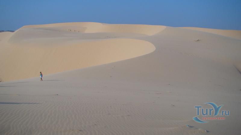Белые дюны, наряду с Красными, считаются самыми красивыми местами провинции и бесспорно являются самыми популярными достопримечательностями. Их ландшафт несколько напоминает пустыню Сахара. Весь массив Белых дюн довольно большой, протяженностью более 10 километров, а находится довольно далеко от курортной зоны, из-за чего многие туристы не доезжают до него, принимая за него другие образования по пути. До настоящих же Белых дюн от деревни Муйне ехать почти 30 километров.