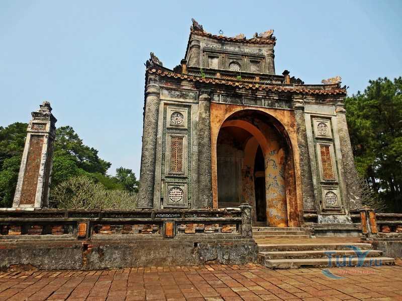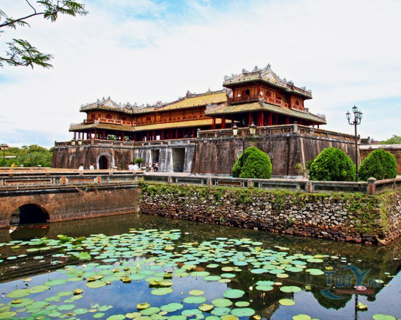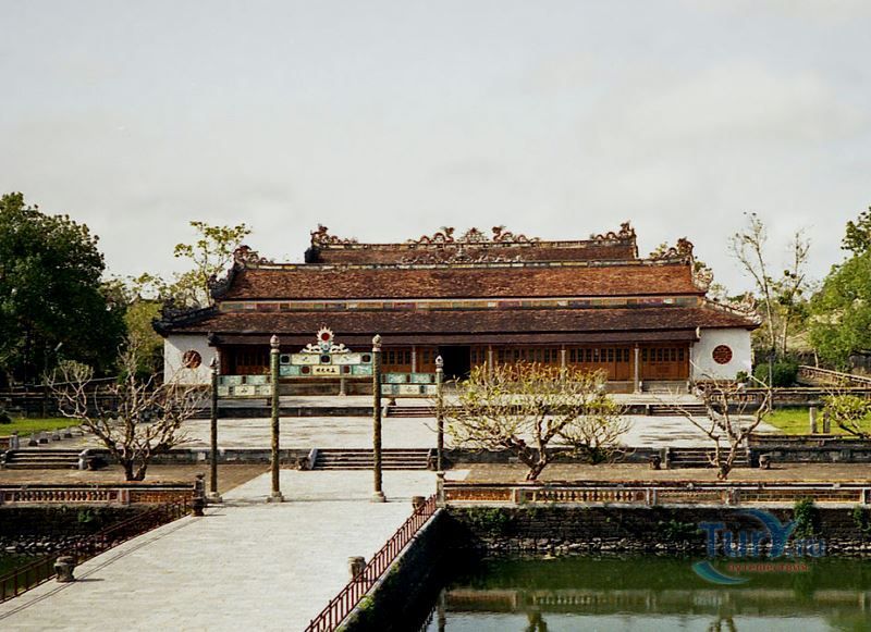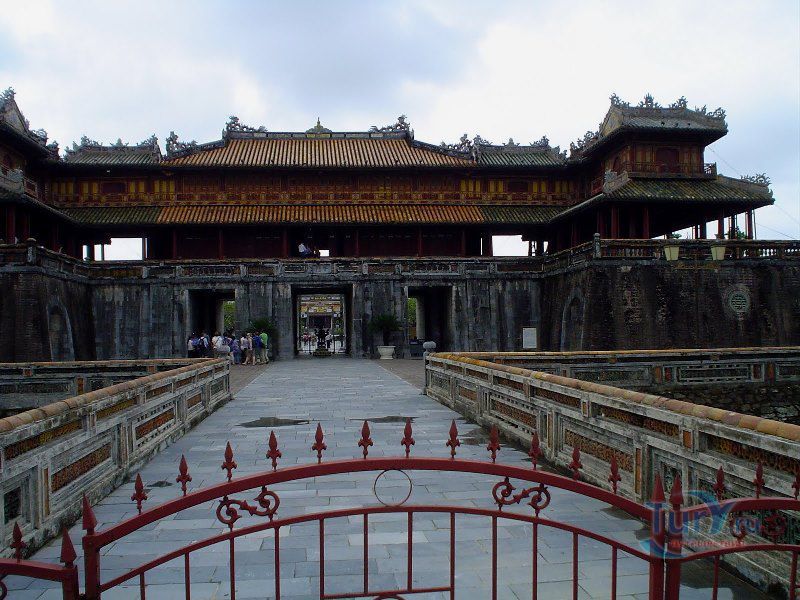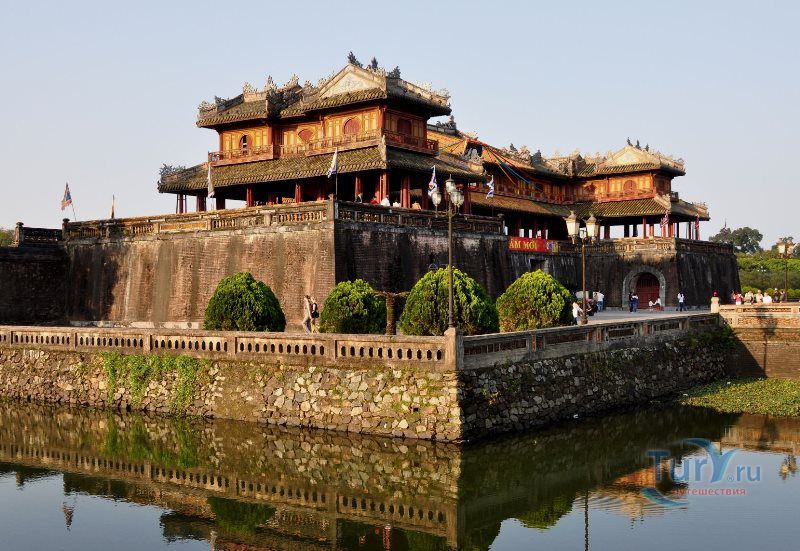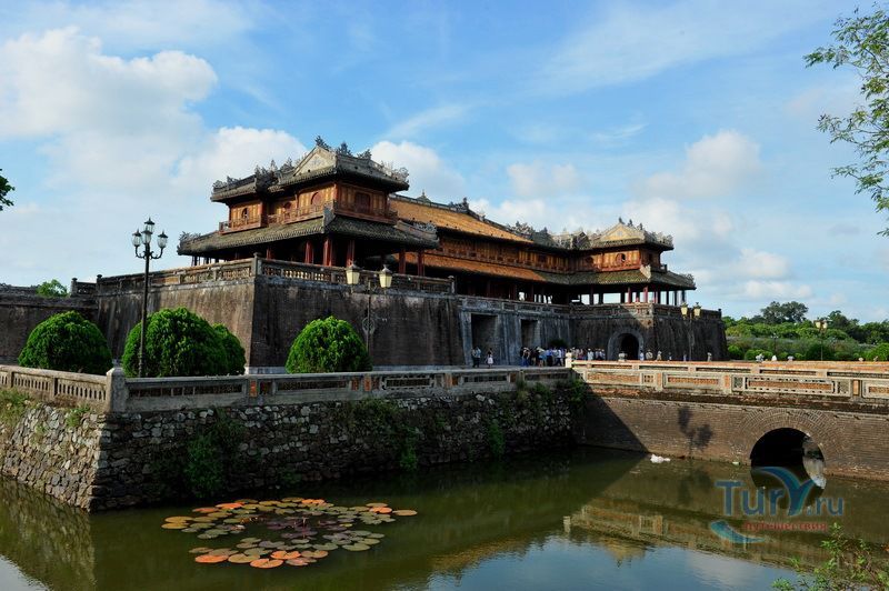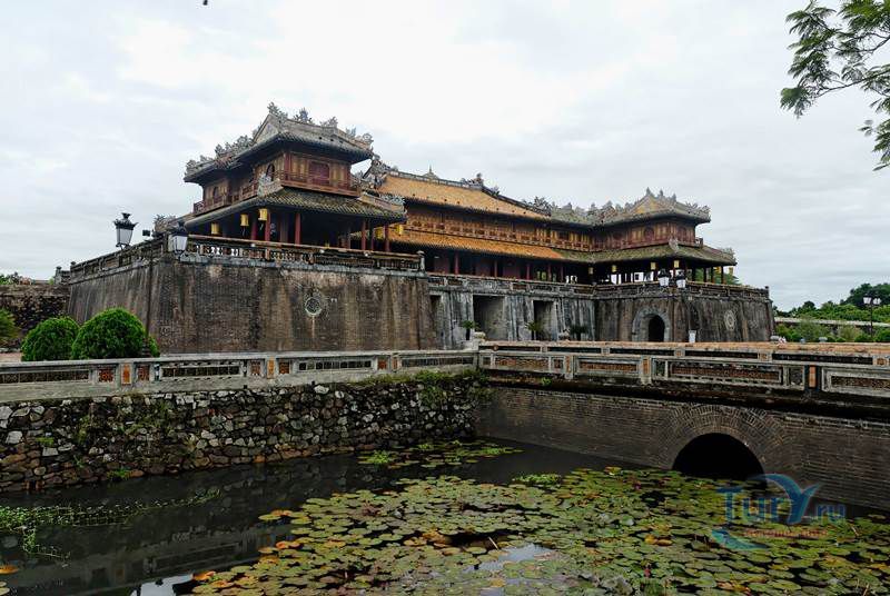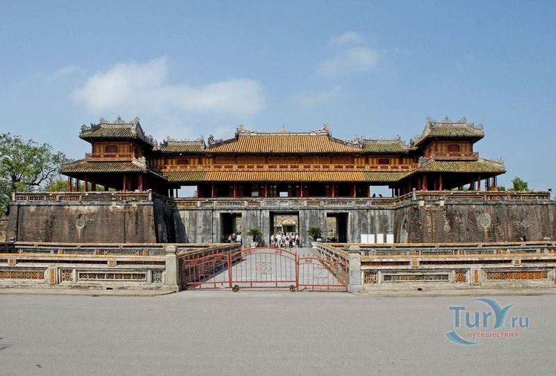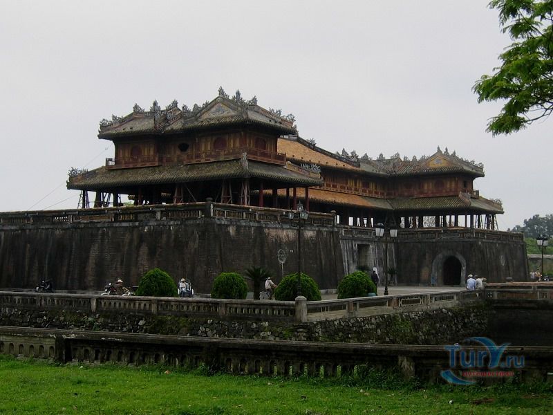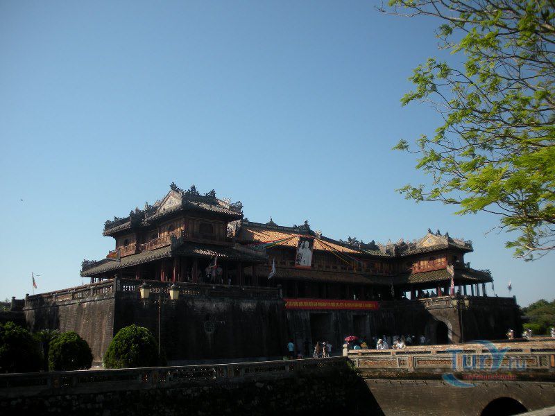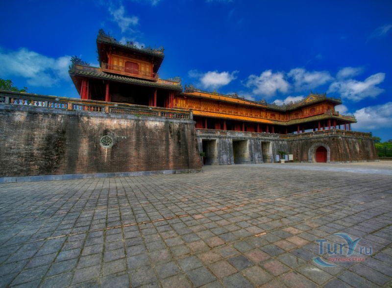 Цитадель начали строить в начале XIX века. Первоначально Цитадель была построена из земли, однако за первые десятилетия XIX в. десятки тысяч людей трудились над возведением крепостных валов, построенных в стиле французского военного инженера Вобана. Внутри Цитадели находится Императорский город – своеобразная копия Пекинского Запретного города. Ворота Нгомон ведут внутрь Цитадели и имеют пять входов: центральный - для императора, два – для королевских слонов и еще два – для королевских слуг-мандаринов. Ворота венчает огромная Сторожевая башня пяти фениксов. Здесь в 1945 году последний император династии Нгуен подписал отречение от престола. Сигнальная башня Кот Ко возвышается над южными укреплениями Цитадели. Недалеко от нее и ворот Нган находится площадь для парадов, на которой установлены девять бронзовых пушек – так называемые, династические пушки. Они символизируют четыре времени года и пять ритуальных элементов.