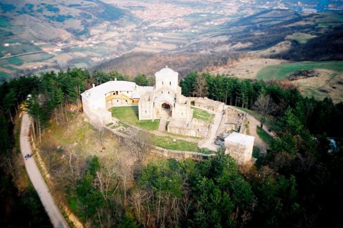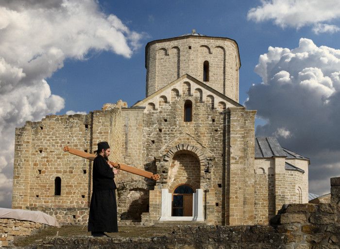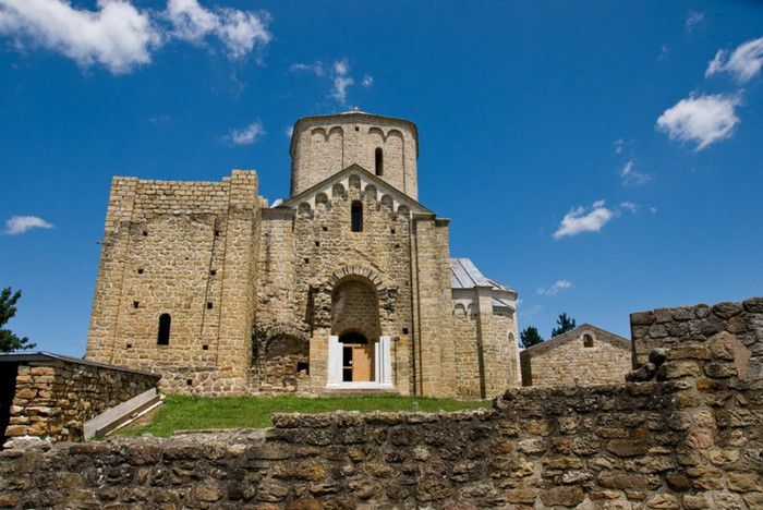 Монастырь Джурджеви Ступови стоит на холме, с которого открывается красивейшая панорама города Нови Пазар. Монастырский комплекс включает церковь св. Георгия, трапезную, дортуар (общую спальню), резервуары с водой и стены с башней у входа.