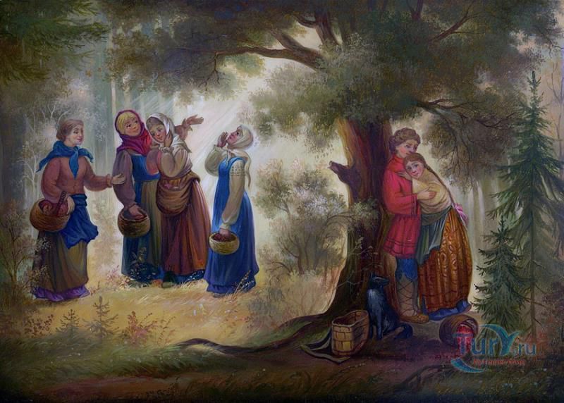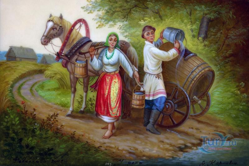 Федоскинская миниатюра - вид традиционной русской лаковой миниатюрной живописи масляными красками на папье-маше, сложившийся в конце XVIII в. в подмосковном селе Федоскино. Излюбленными мотивами росписи федоскинских миниатюристов стали популярные в то время сюжеты: «тройки», «чаепития», сцены из русской и малороссийской крестьянской жизни. Наиболее всего ценились ларцы, украшенные сложными многофигурными композициями - копиями картин русских и западноевропейских художников. Ассортимент изделий фабрики был очень разнообразен - ларцы, шкатулки, многообразные по форме и размеру коробочки, крышки альбомов, чайницы, очечники, кошельки, пасхальные яйца и др.