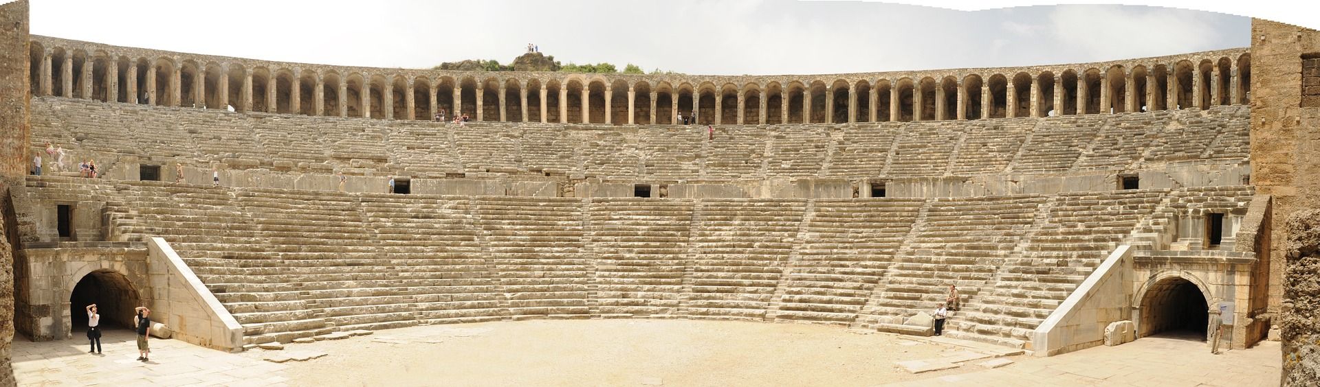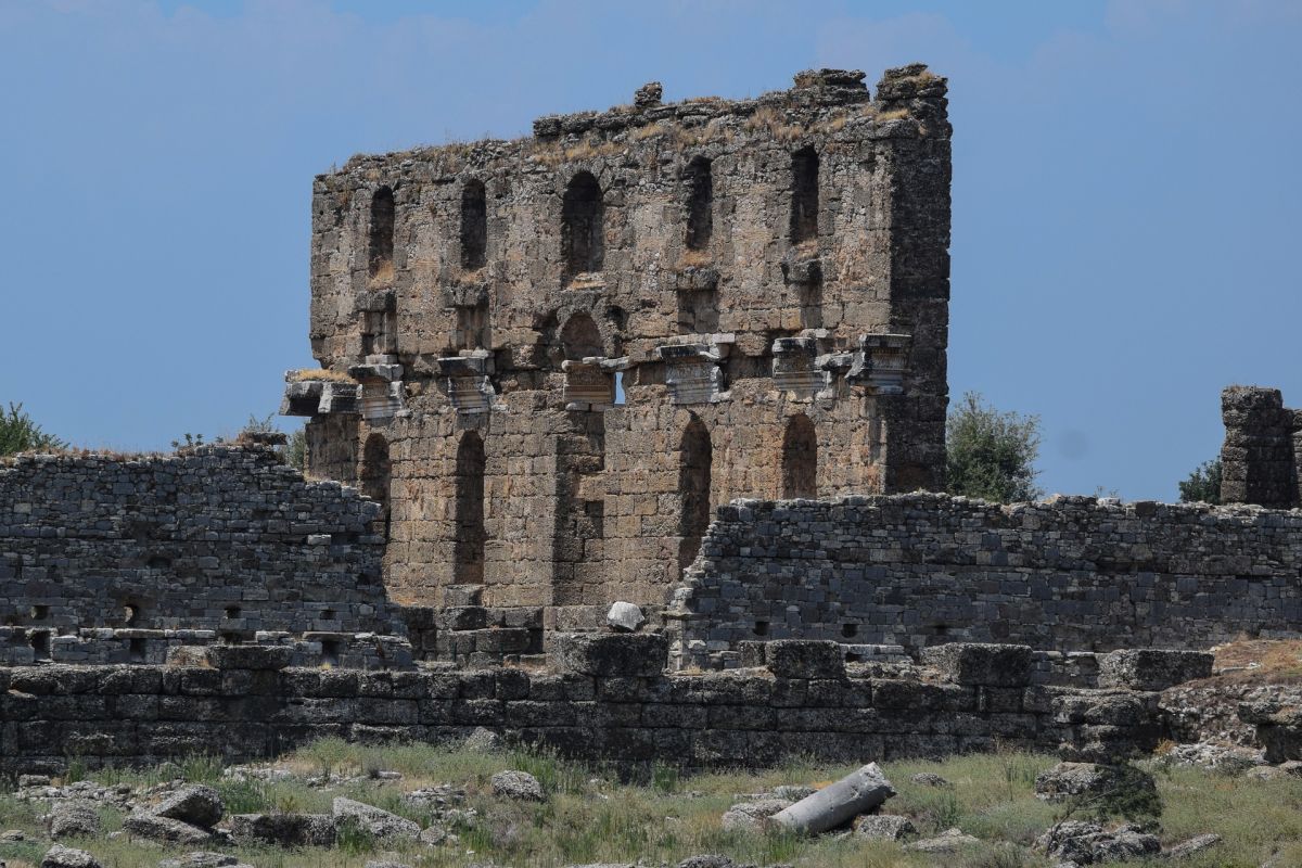 Согласно греческой легенде, город был основан аргивянскими колонистами, которые, под лидерством героя Мопсоса, прибыли в Памфилию после троянской войны. Древний амфитеатр в Аспендосе считается одним из наиболее сохранившихся в Турции памятников архитектуры и привлекает к себе множество туристов уже сотни лет. Не смотря на свой почетный возраст он не утратил не только своей величественности и красоты, но и своего предназначения, ведь действия там проводятся до сих пор.