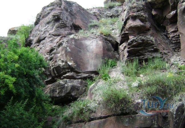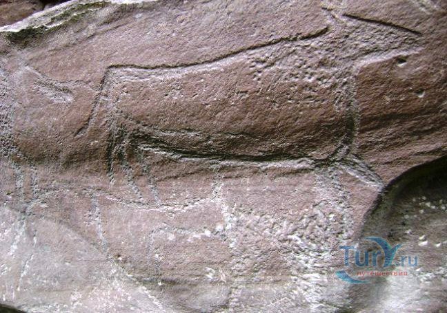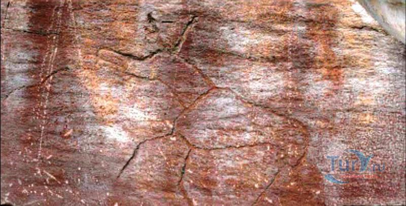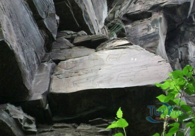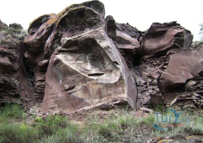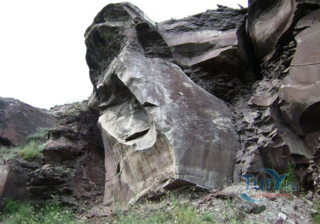 Шалаболинская писаница (по названию близлежащего села Шалоболино) расположена на крутом береговом скальном массиве, на правом берегу реки Тубы, так близко к воде, что отдельные рисунки можно рассмотреть, не выходя на берег.
