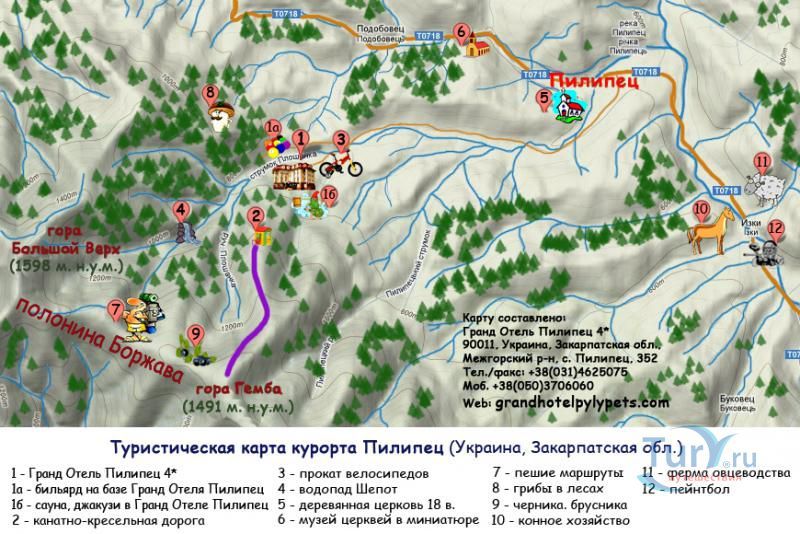 Гранд Отель Пилипец 4* подготовил для путешественников забавную туристическую карту, на которой обозначено основные возможности активного отдыха в Пилипце. Посмотрите.