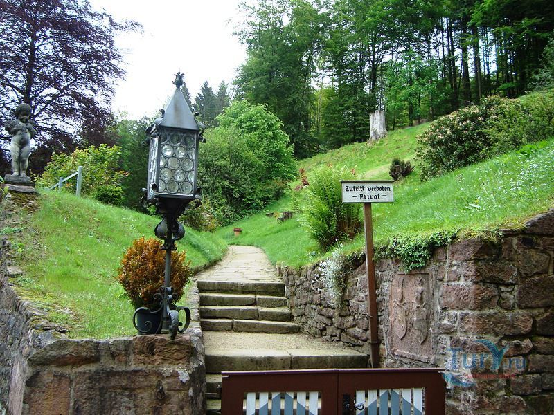 Замок Меспельбрунн – один из самых посещаемых в северной Баварии. Находящийся в небольшой, укрытой и живописной долине, он сумел остаться в целости и сохранности во время Тридцатилетней войны и не пострадать за десятилетие Первой и Второй мировой войны. Замок Меспельбрунн – один из немногих замков в Германии, которому практически удалось не изменить свои оригинальные формы и размеры, включая даже старую часть замка, которая датируется 13 веком, и массивные башни. Башни одинаковой высоты украшены фронтонами на западе.